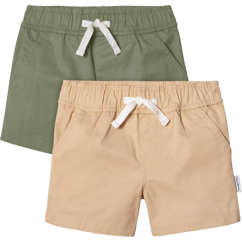 Gerber Baby Toddler Unisex Stretch Chino Shorts(Olive/Dark Khaki)