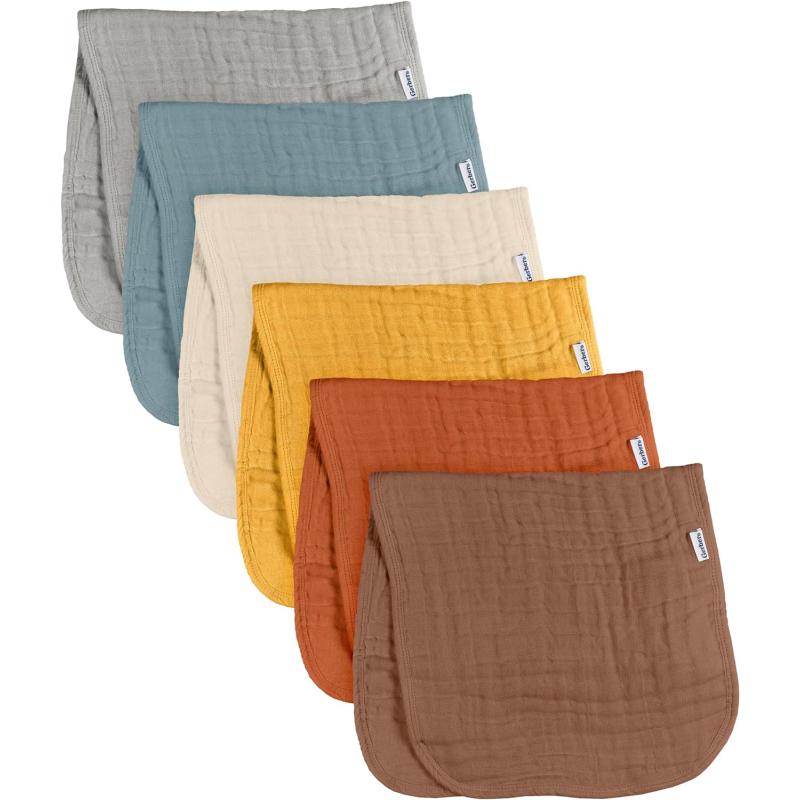 Gerber Baby Unisex Muslin Burp Cloths 6-Pack, Vanilla, Large Size 20″ x 10″(Multi Blues Browns)