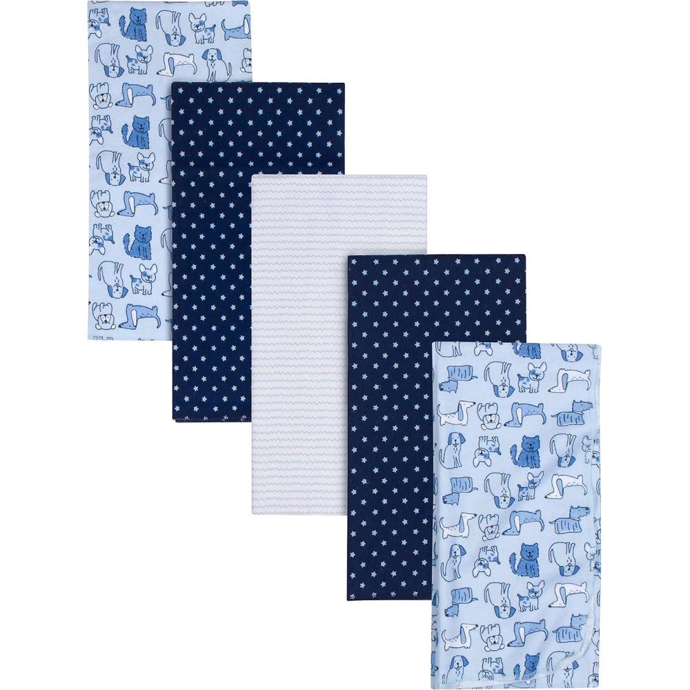 Gerber Boys Newborn Infant Baby Toddler Nursery 100% Cotton Flannel Receiving Swaddle Blanket, Safari White,5 Count (Pack of 1)(Dogs Blue)