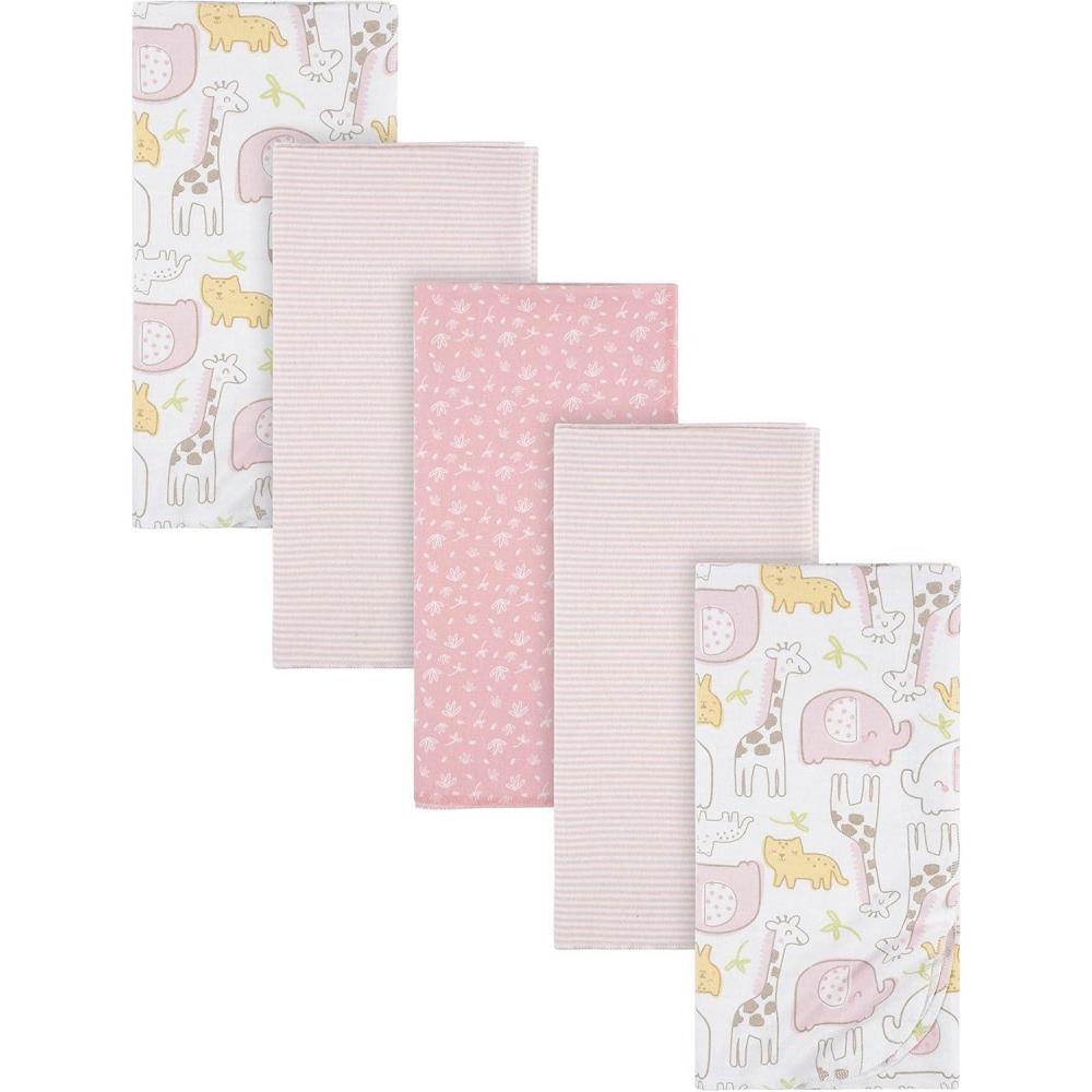 Gerber Boys Newborn Infant Baby Toddler Nursery 100% Cotton Flannel Receiving Swaddle Blanket, Safari White,5 Count (Pack of 1)(Pink Safari)