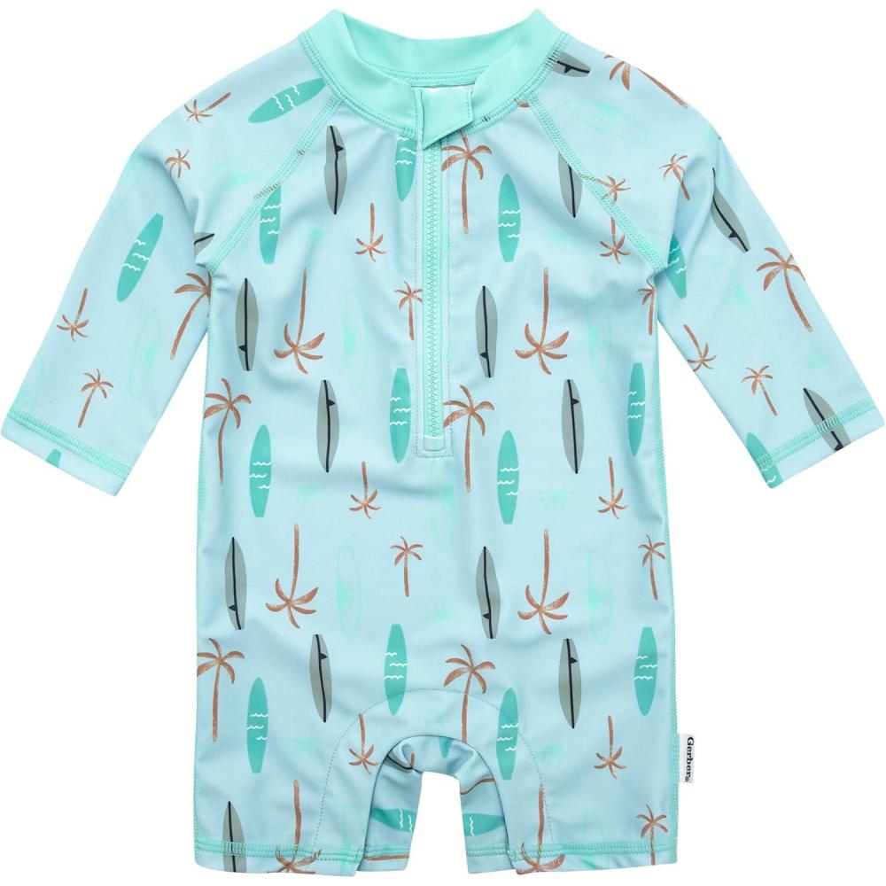 Gerber Boys’ Toddler Long Sleeve One Piece Sun Protection Rashguard Swimsuit(Surfboard)
