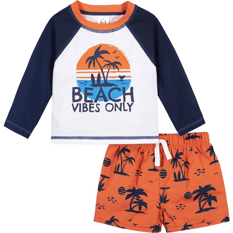 Get ready for a summer of water fun! This versatile two-piece combo includes matching bottoms and a protective rashguard, so your little one can gear up for a season brimming with water adventures. Whether it's family trips or home-based fun, this set is tailor-made for those sunny, joyful days. Crafted from UPF 50+ material to ward off harmful sun rays and featuring a design that naturally resists skin irritation, your little one can delight in endless fun in safety.