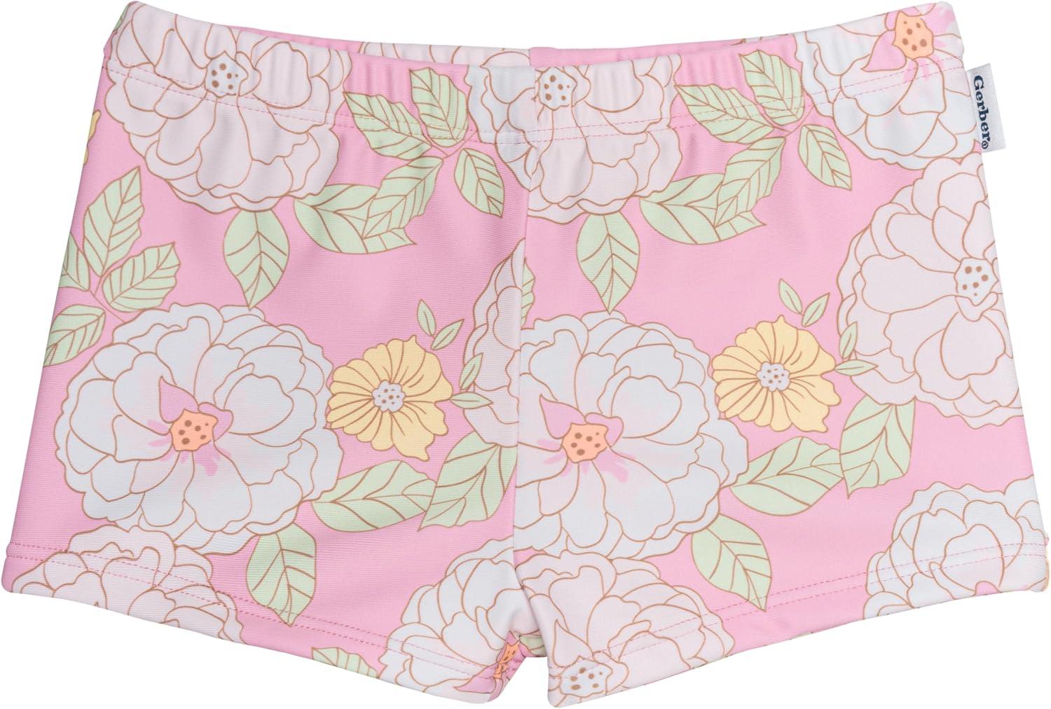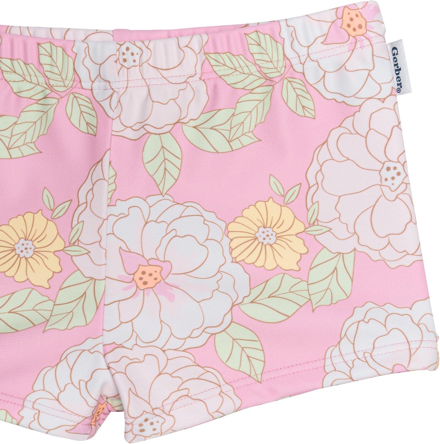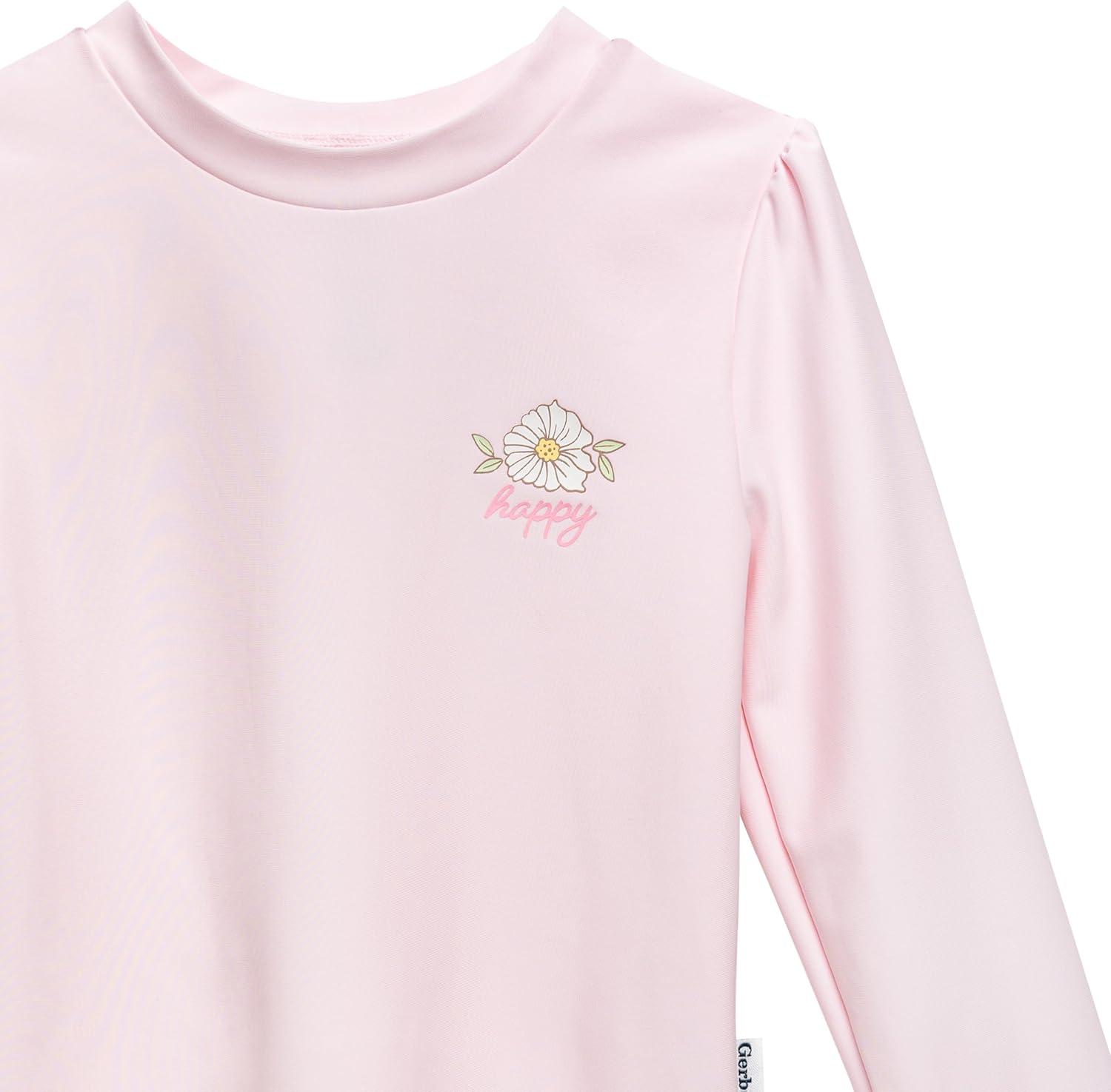 Gerber Girls’ Baby Toddler Long Sleeved Rashguard Swim Bathing Suit Set(Peonies)