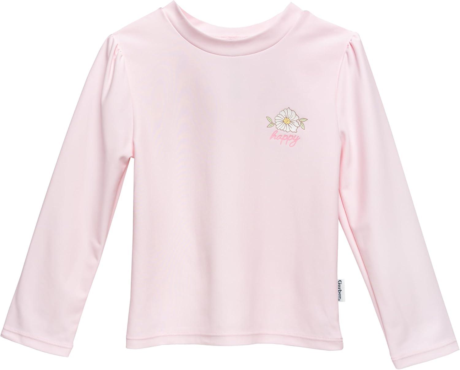 Gerber Girls’ Baby Toddler Long Sleeved Rashguard Swim Bathing Suit Set(Pink Shells)