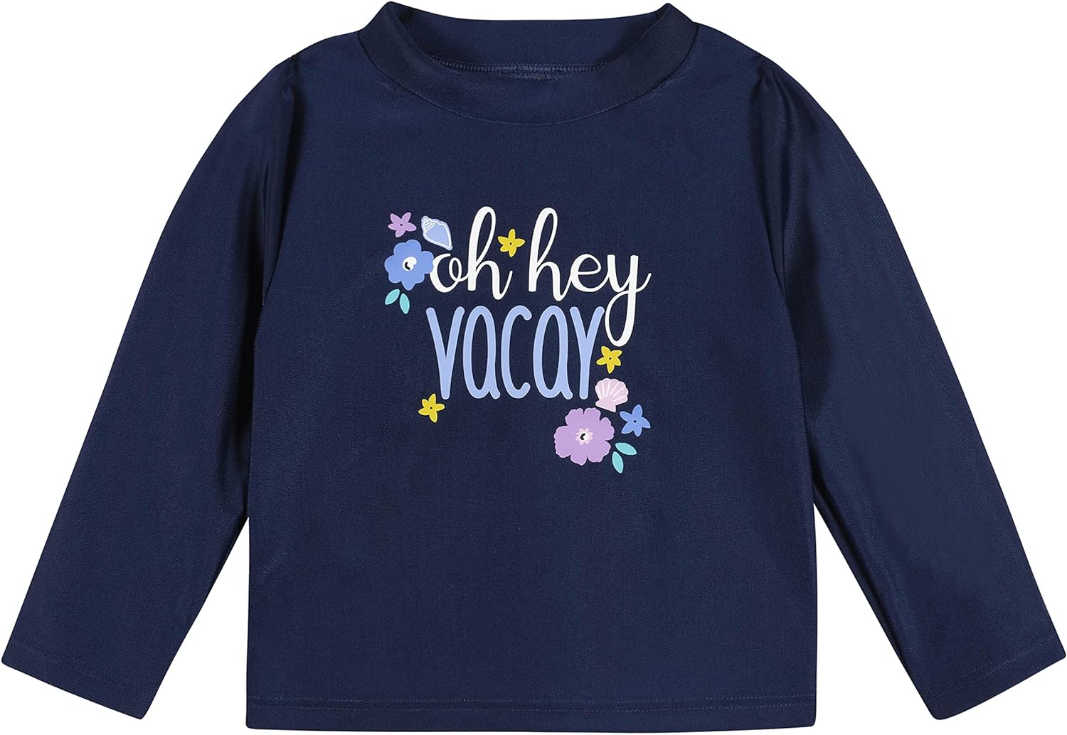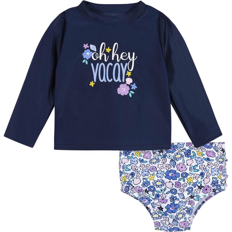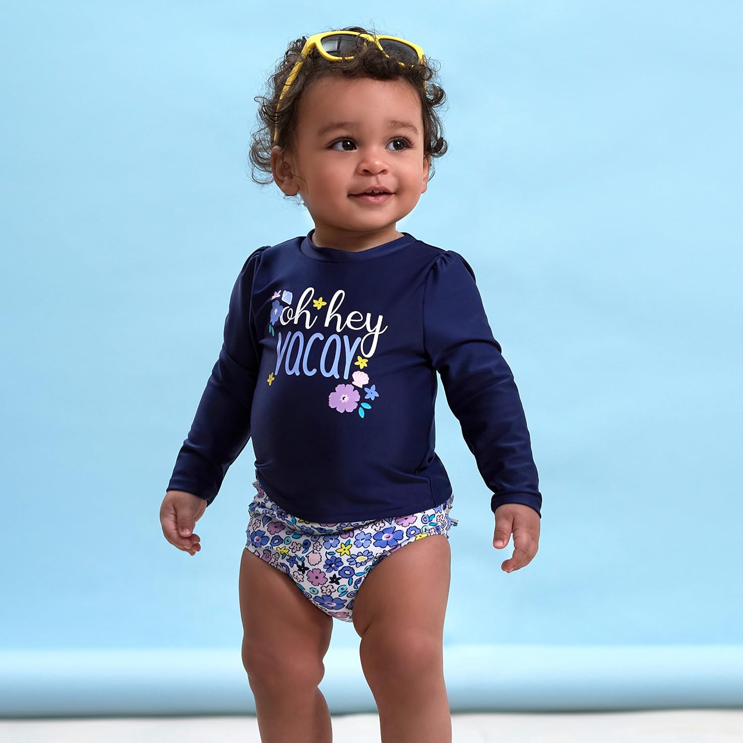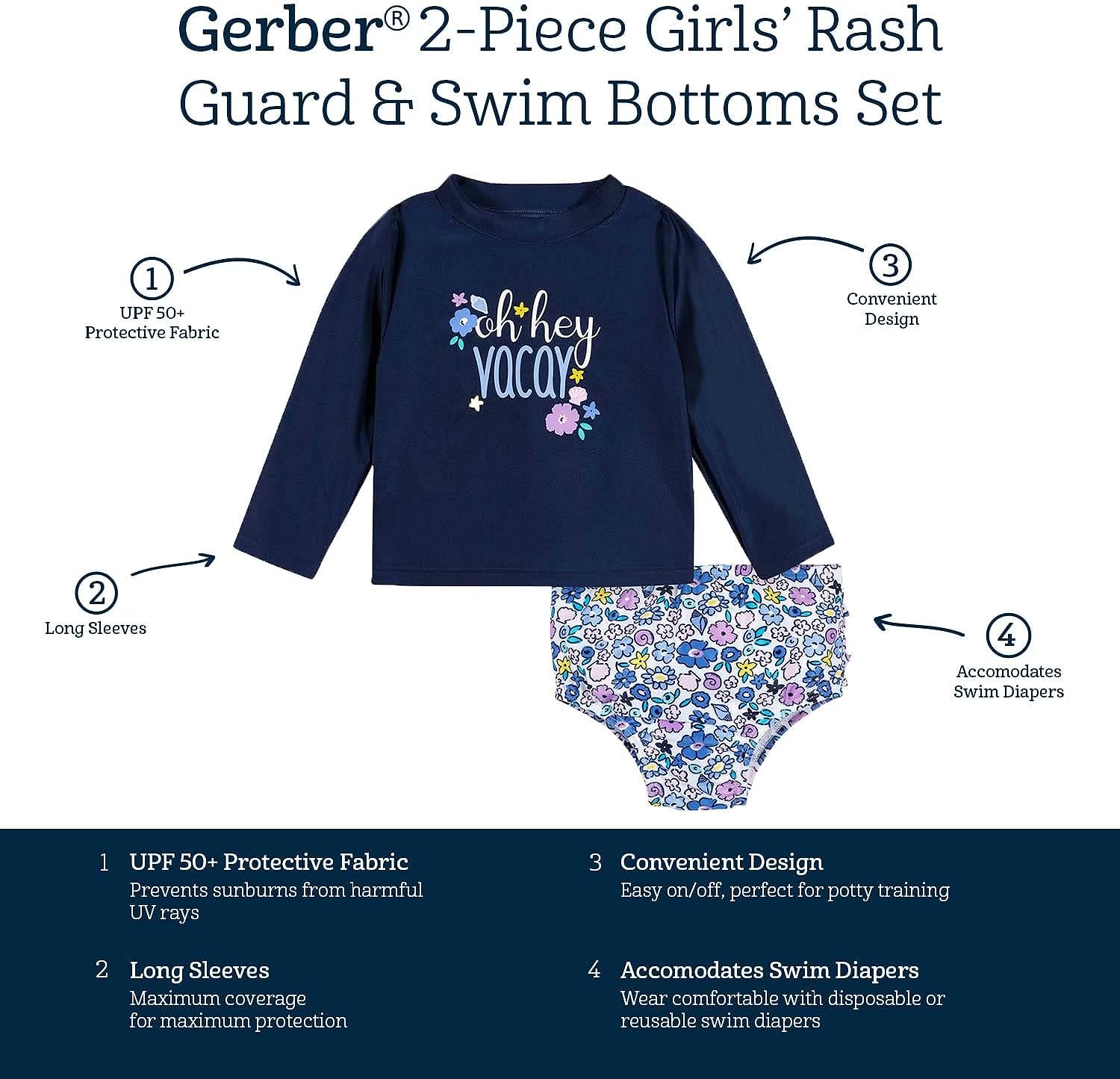 Gerber Girls’ Baby Toddler Long Sleeved Rashguard Swim Bathing Suit Set(Purple Floral Shell)