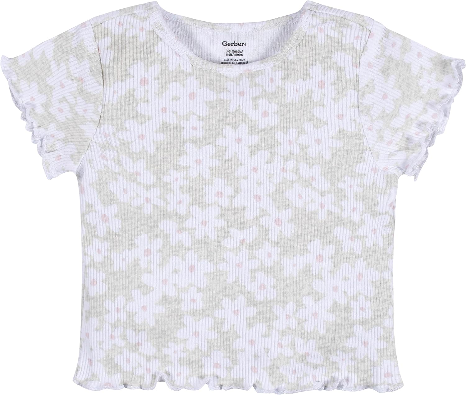 Gerber Girls’ Toddler 3-Pack Short Sleeve Tees(White Floral)