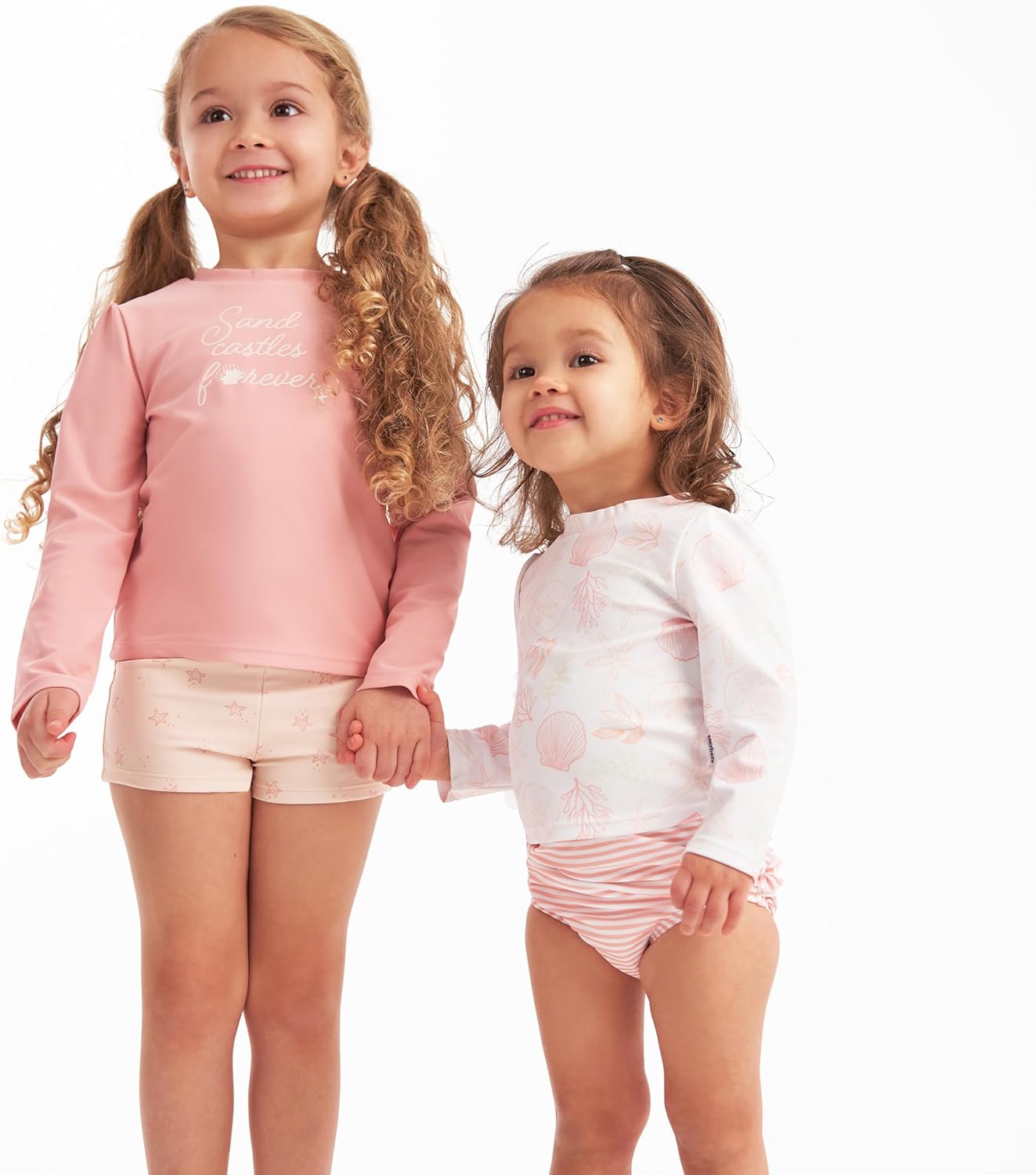 Gerber Girls' Toddler Long Sleeved Rashguard Swim Bathing Suit Set