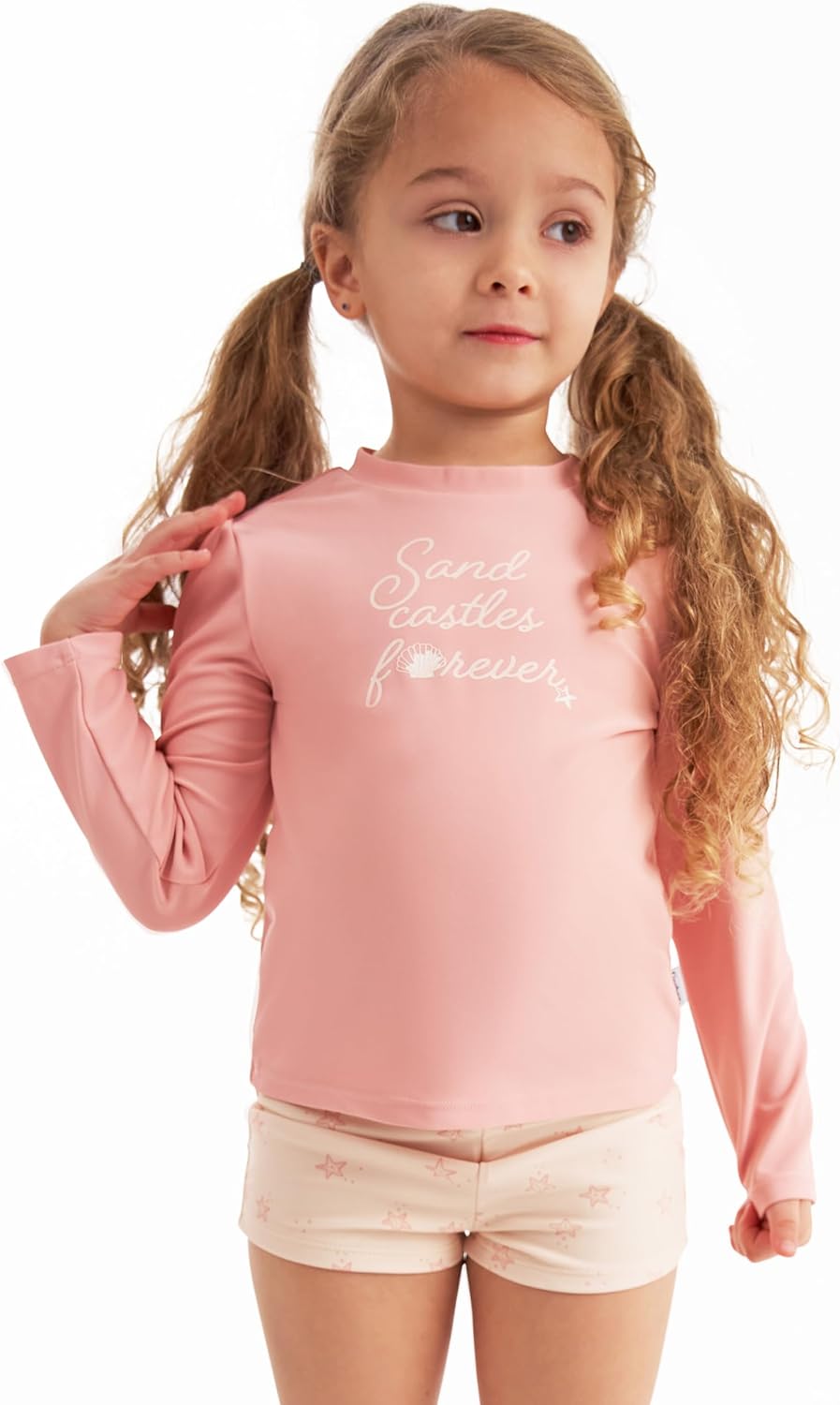 Gerber Girls’ Toddler Long Sleeved Rashguard Swim Bathing Suit Set(Starfish)