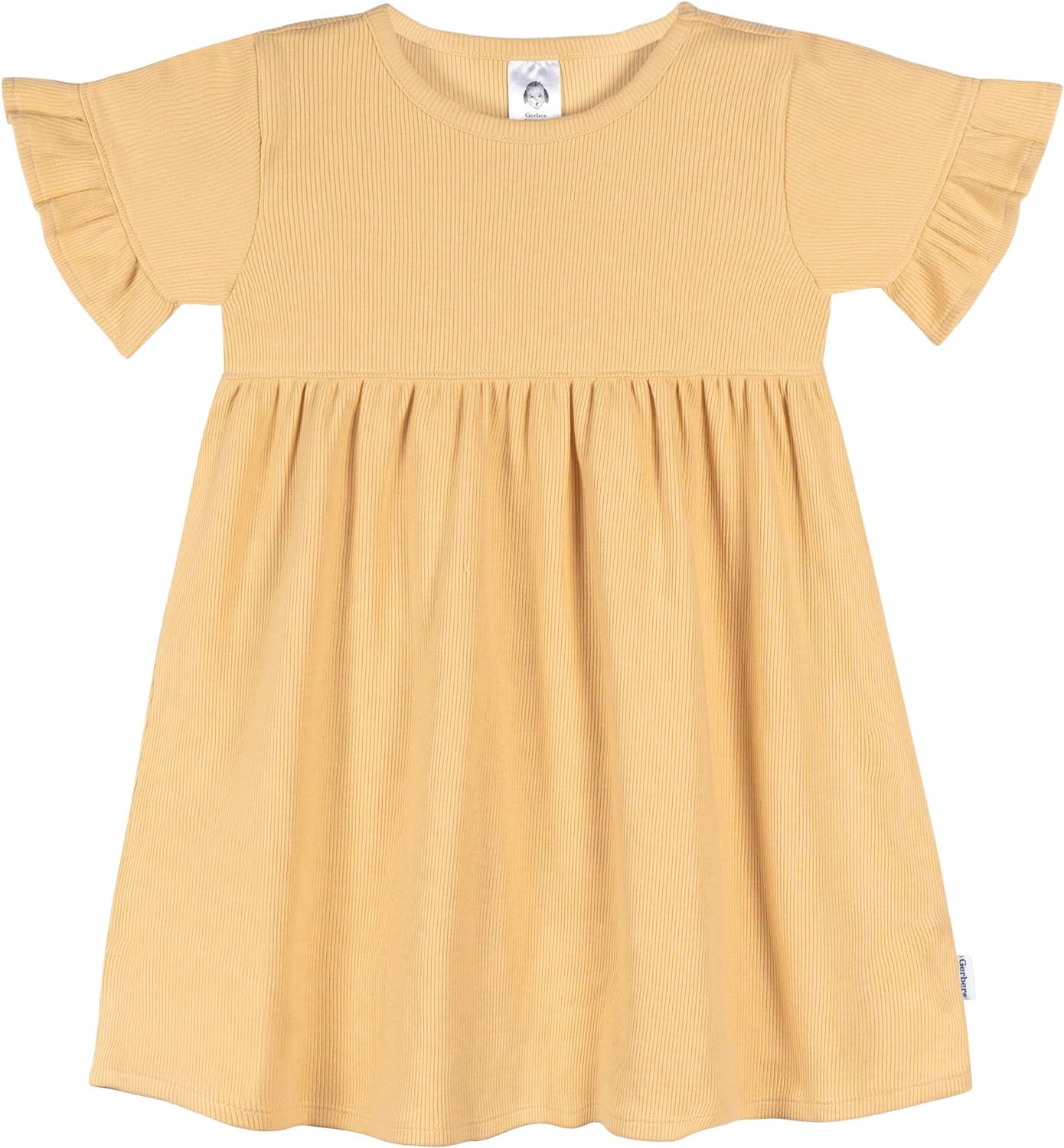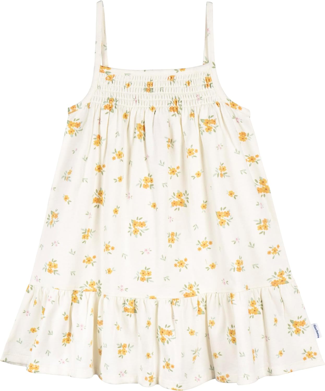 Gerber Girls’ Toddler Short-Sleeve and Sleeveless Dress Set(Bouquets)