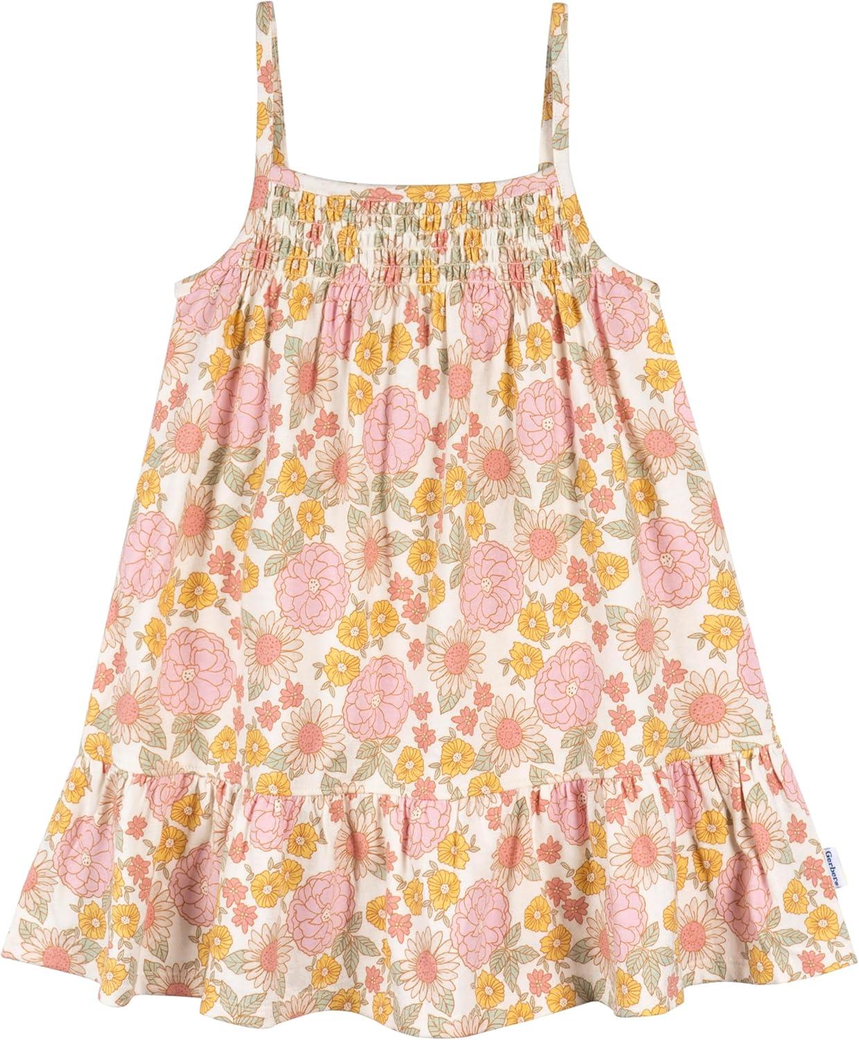 Gerber Girls’ Toddler Short-Sleeve and Sleeveless Dress Set(Retro Floral)