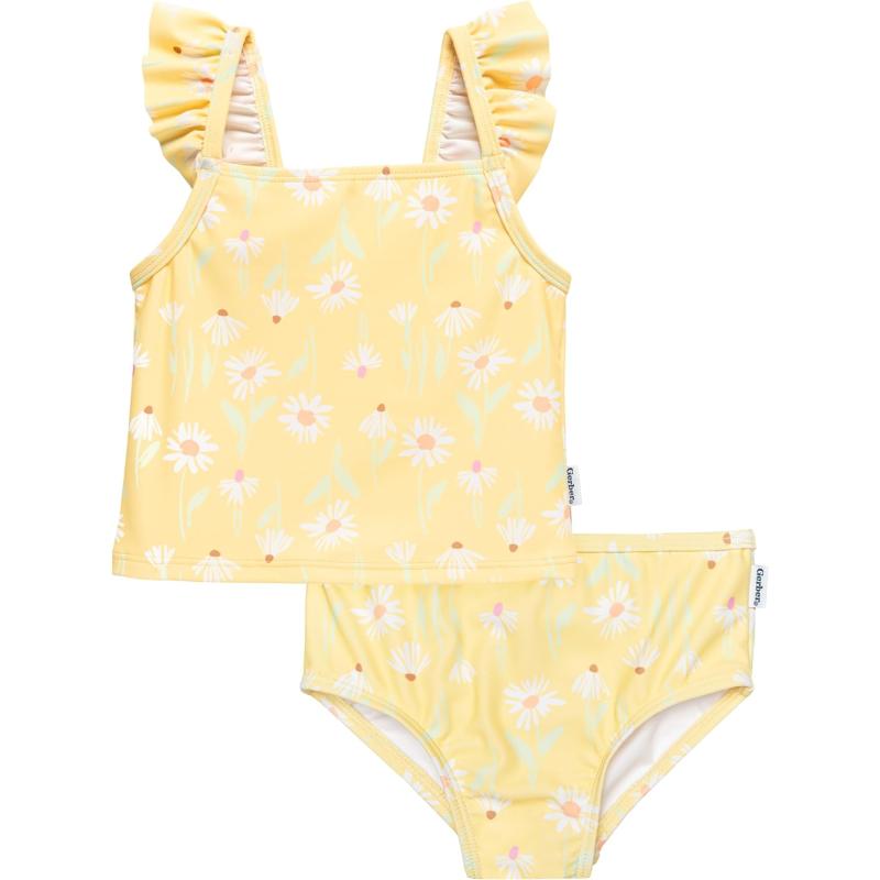 Prepare for a splash of style at the beach or pool with this delightful toddler girl's swimsuit set! Showcasing a chic pattern with delightful shoulder and leg ruffles, your little one will fall in love with the elegance of this swimsuit. And you’ll love the UPF 50+ protective fabric that protects against harmful sun rays. With classic blue and white stripes, this toddler girl swimsuit is a timeless look!