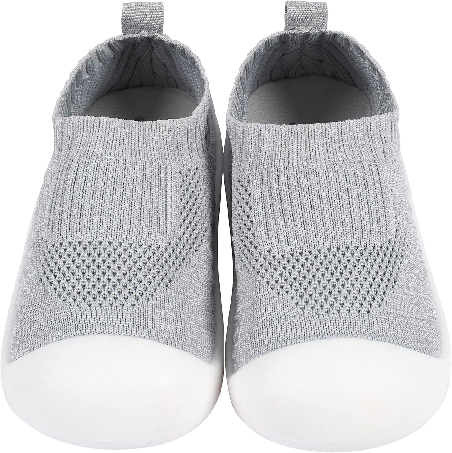 Gerber Kids’ Baby Toddler Boy and Girl Stretchy Knit Slip-On Sneaker(Grey)