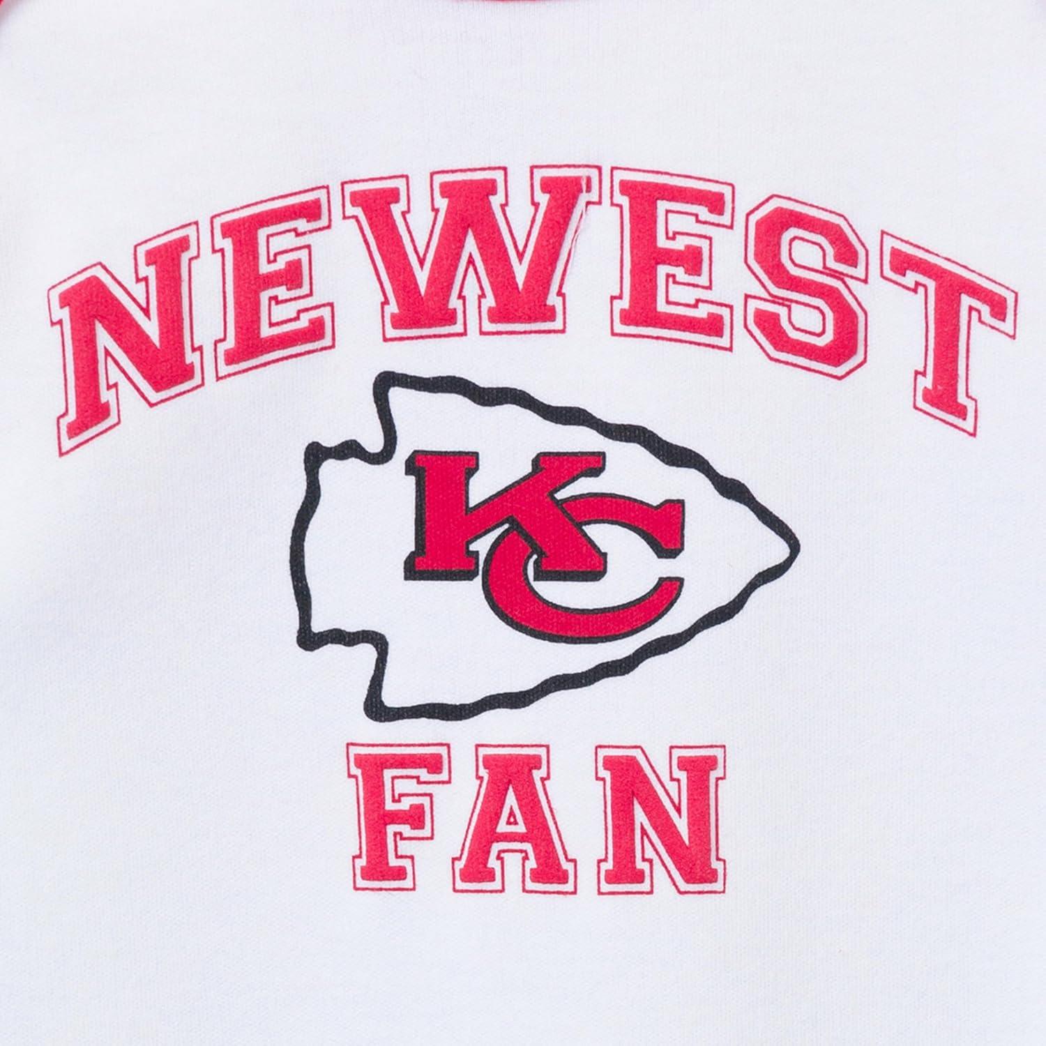 Your baby will be ready to cheer on the Kansas City Chiefs in this adorable 3-piece outfit! The soft bodysuit features a lap shoulder neckline and leg snaps for easy changes, while the pull-on pants and cozy cap keep baby snug. With bold red and white, the Chiefs logo, and “Newest Fan” text, this set is perfect for tiny fans of Chiefs Kingdom!