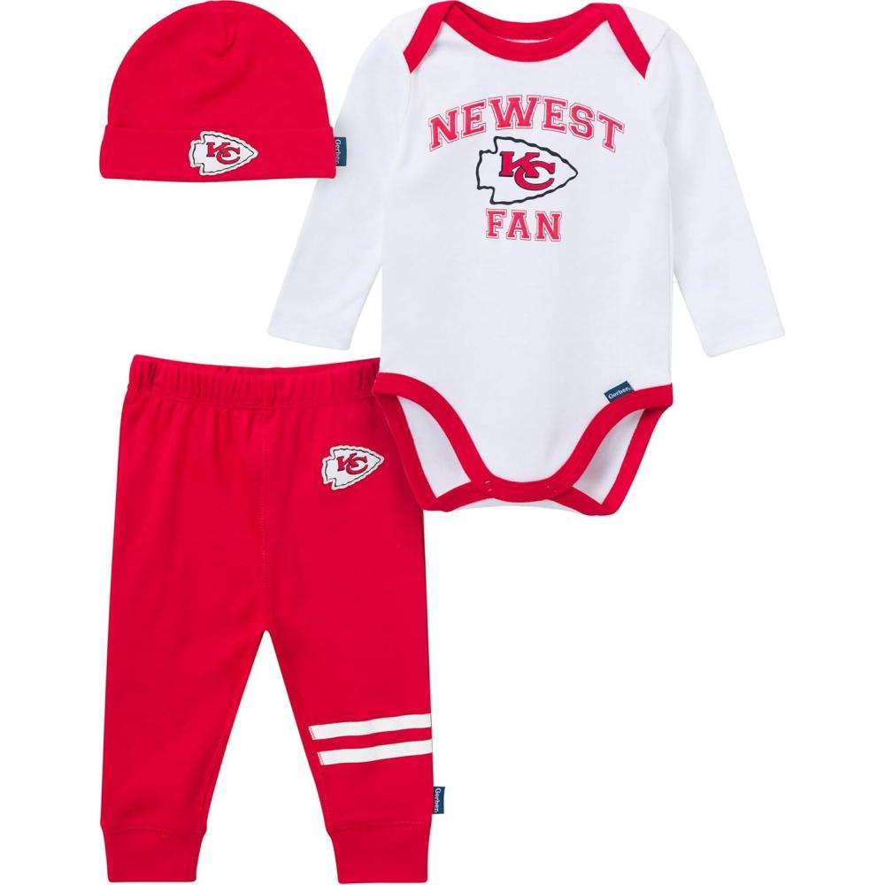 Gerber NFL Baby Boys 3-piece Onesie Bodysuit, Active Pant and Cap Set(Chiefs)
