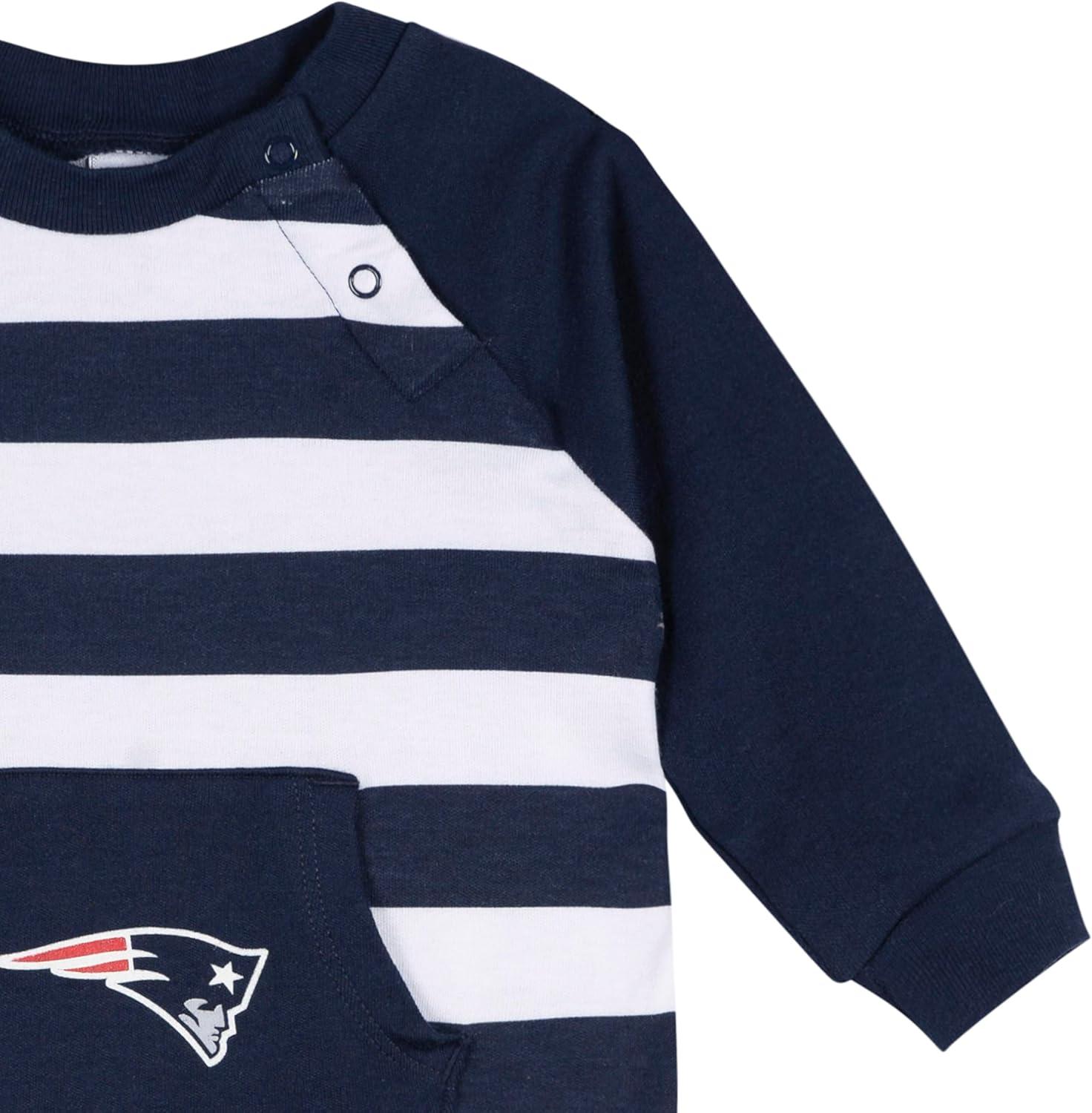 Wrap your little one in all-American comfort with these New England Patriots footless pajamas. Crafted from cozy interlock fabric, they offer full-length sleeves and legs for extra warmth, plus ribbed cuffs to help the fit stay put. Snap closures at the legs make changes a breeze, and the kangaroo-style pocket with the Patriots logo brings a touch of team spirit to this soft and sporty one-piece.