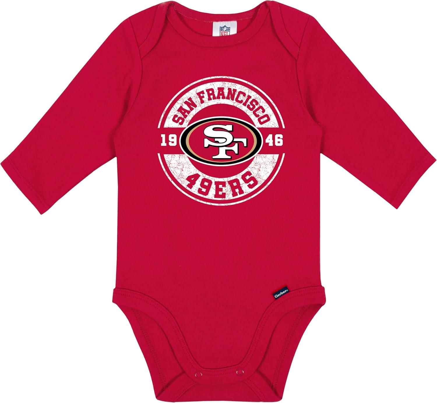 Gerber NFL unisex-baby Nfl 2-pack Long Sleeve Onesie Bodysuit(49ers)