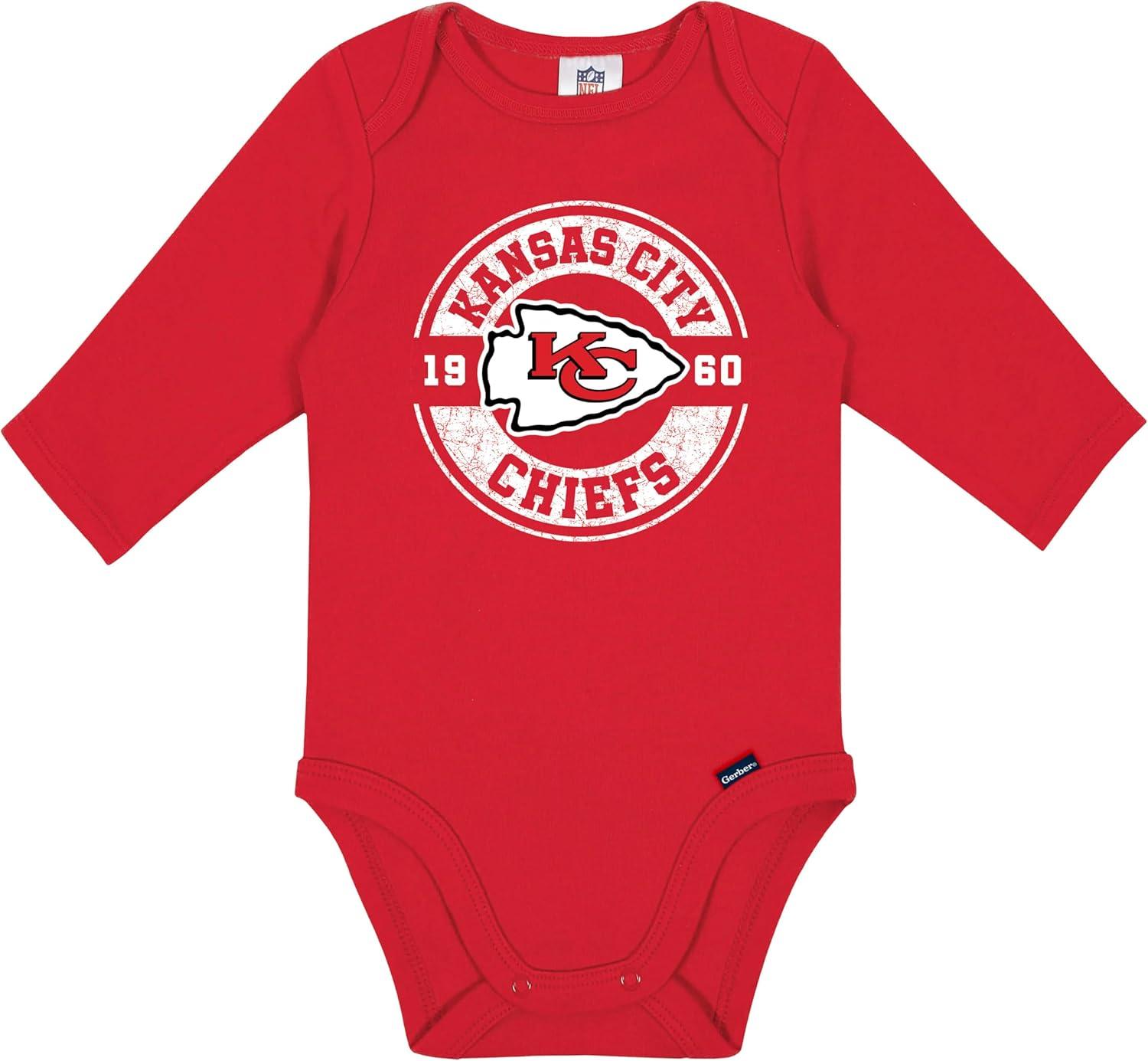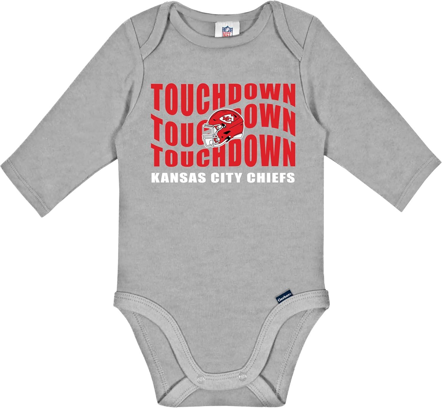 Keep your baby boy warm and comfortable while showing off team pride with this 2-pack of NFL long sleeve bodysuits. Made from thick, durable fabric with a soft hand feel and built-in stretch, these bodysuits are designed to hold up to daily wear and washing, making them ideal for the cooler months. Each one features a lap shoulder neckline and reinforced leg snaps to make dressing and diaper changes quick and hassle-free. Ribbed trim at the neck and leg openings offers a flexible, secure fit that moves with your little one. Finished with bold team graphics and textured puff screen print details, these officially licensed bodysuits deliver standout fan style that’s made to last on game day and every day.