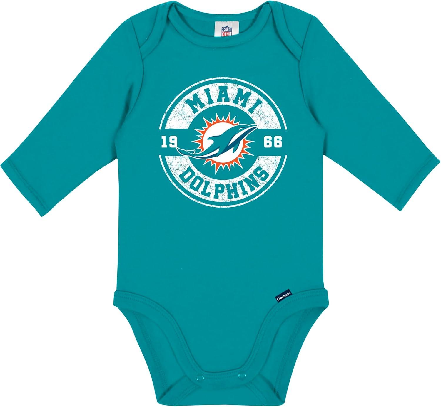Gerber NFL unisex-baby Nfl 2-pack Long Sleeve Onesie Bodysuit(Dolphins)