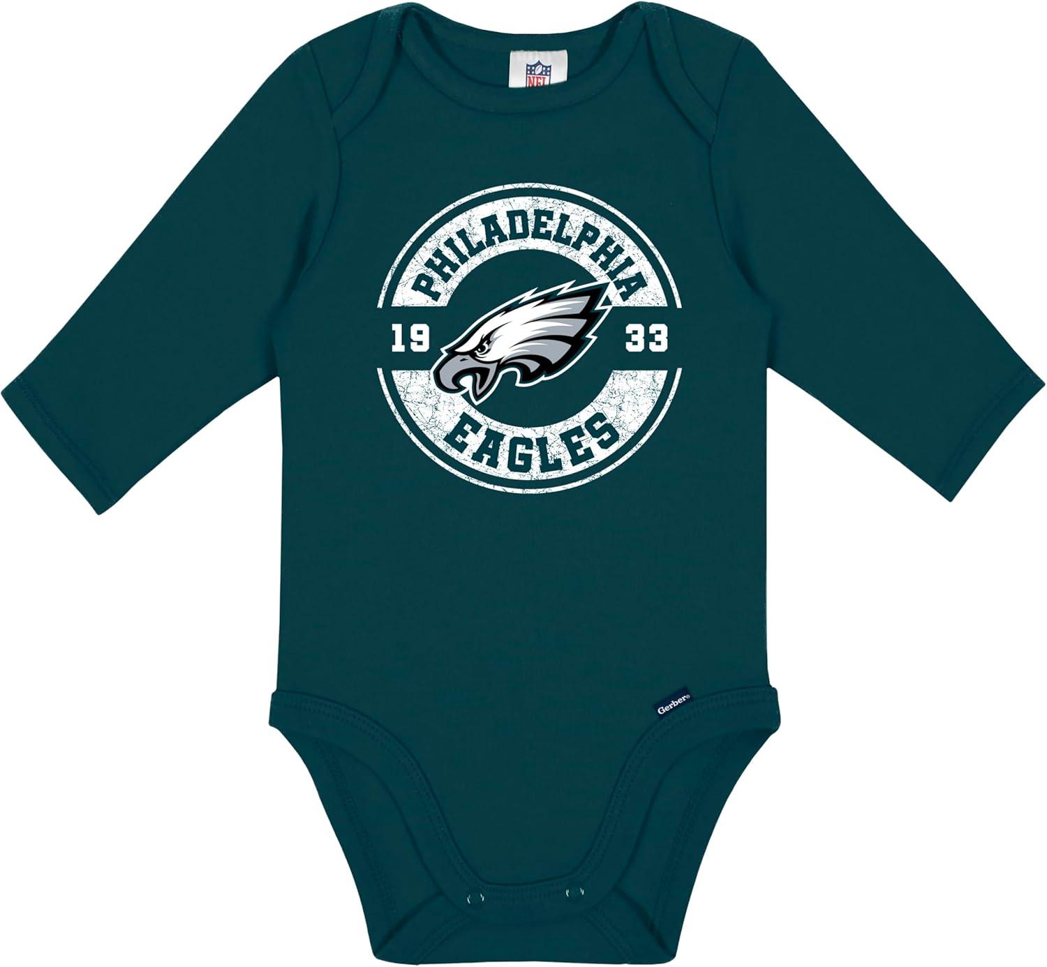 Gerber NFL unisex-baby Nfl 2-pack Long Sleeve Onesie Bodysuit(Eagles)