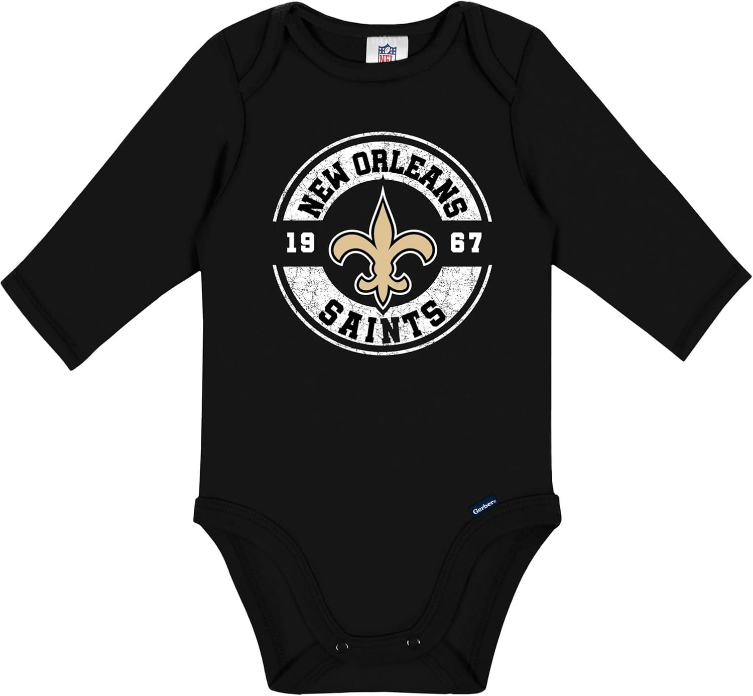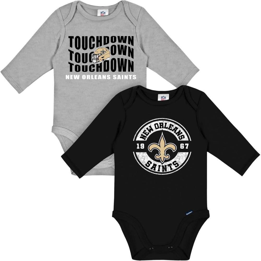 Gerber NFL Unisex Baby Nfl 2-pack Long Sleeve Onesie Bodysuit(Saints)