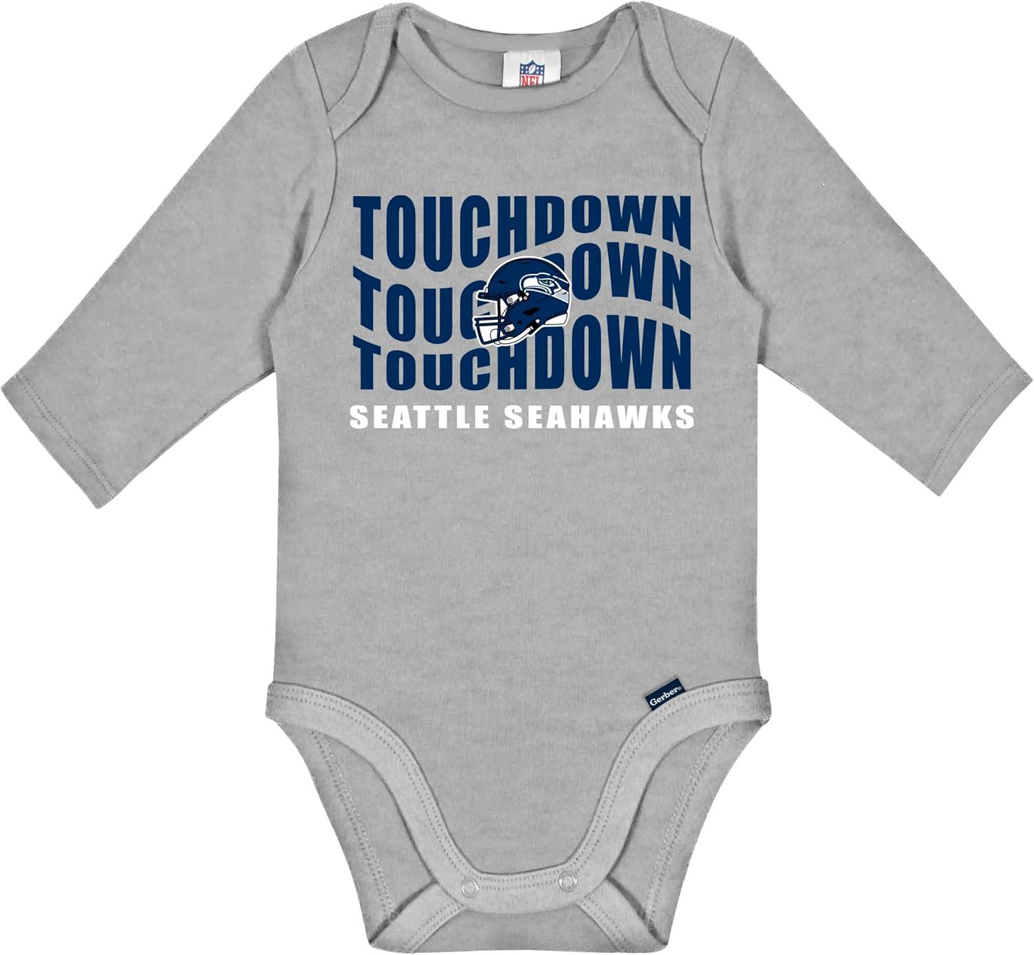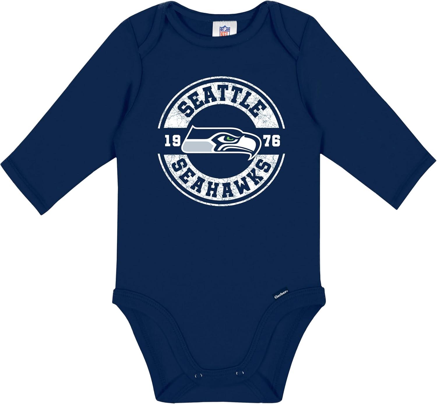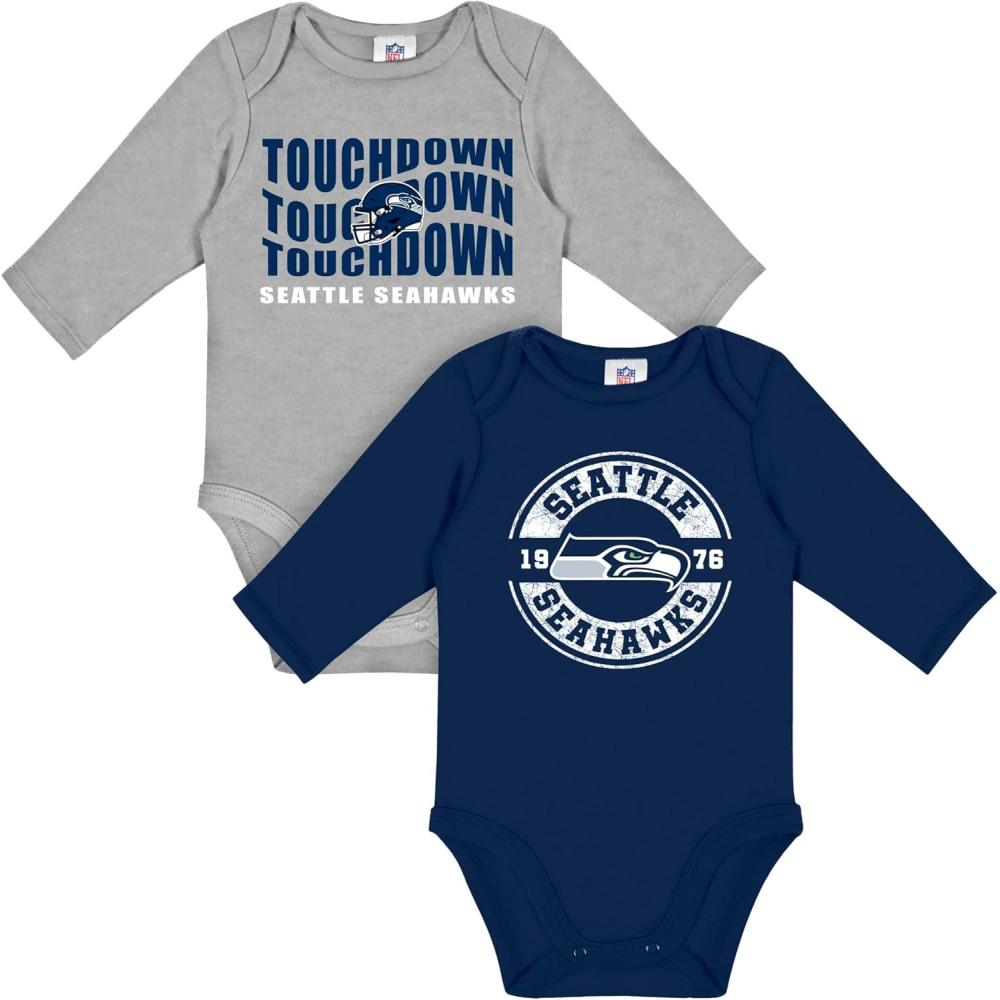 Gerber NFL unisex-baby Nfl 2-pack Long Sleeve Onesie Bodysuit(Seahawks)