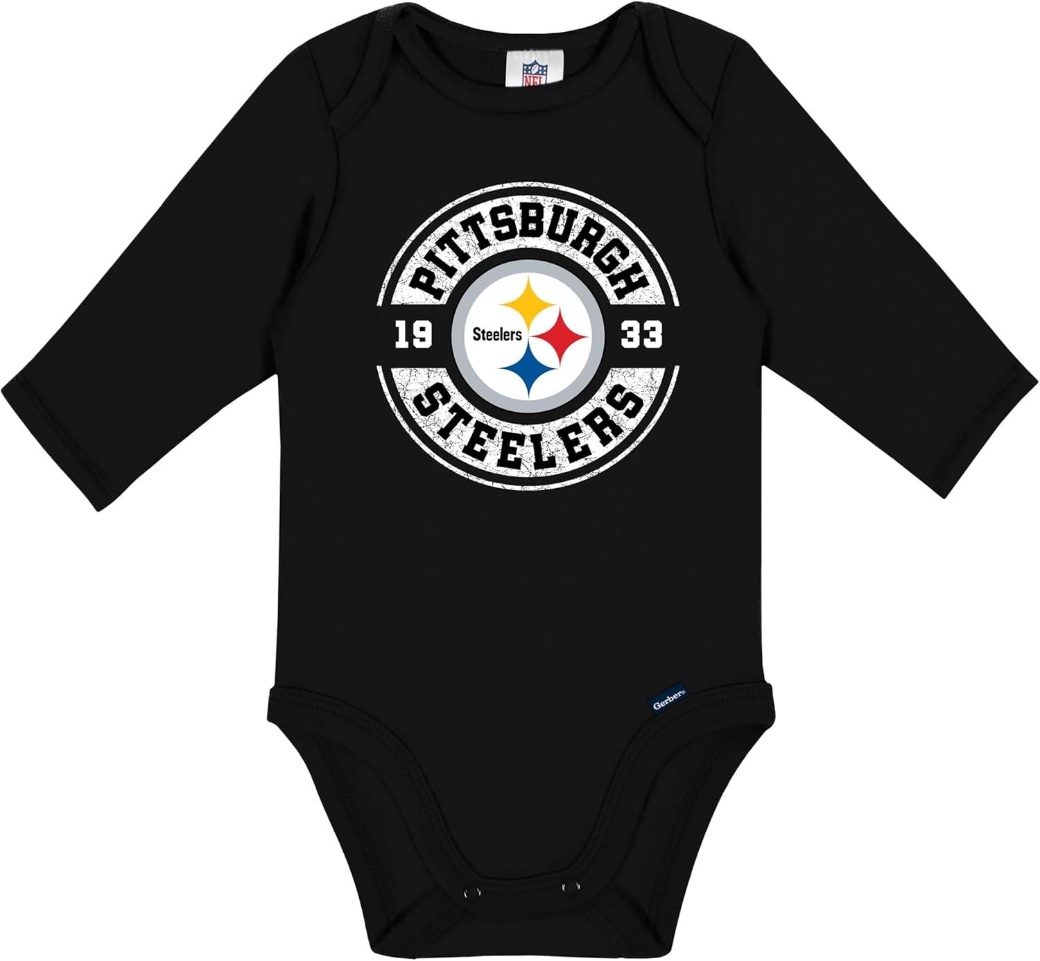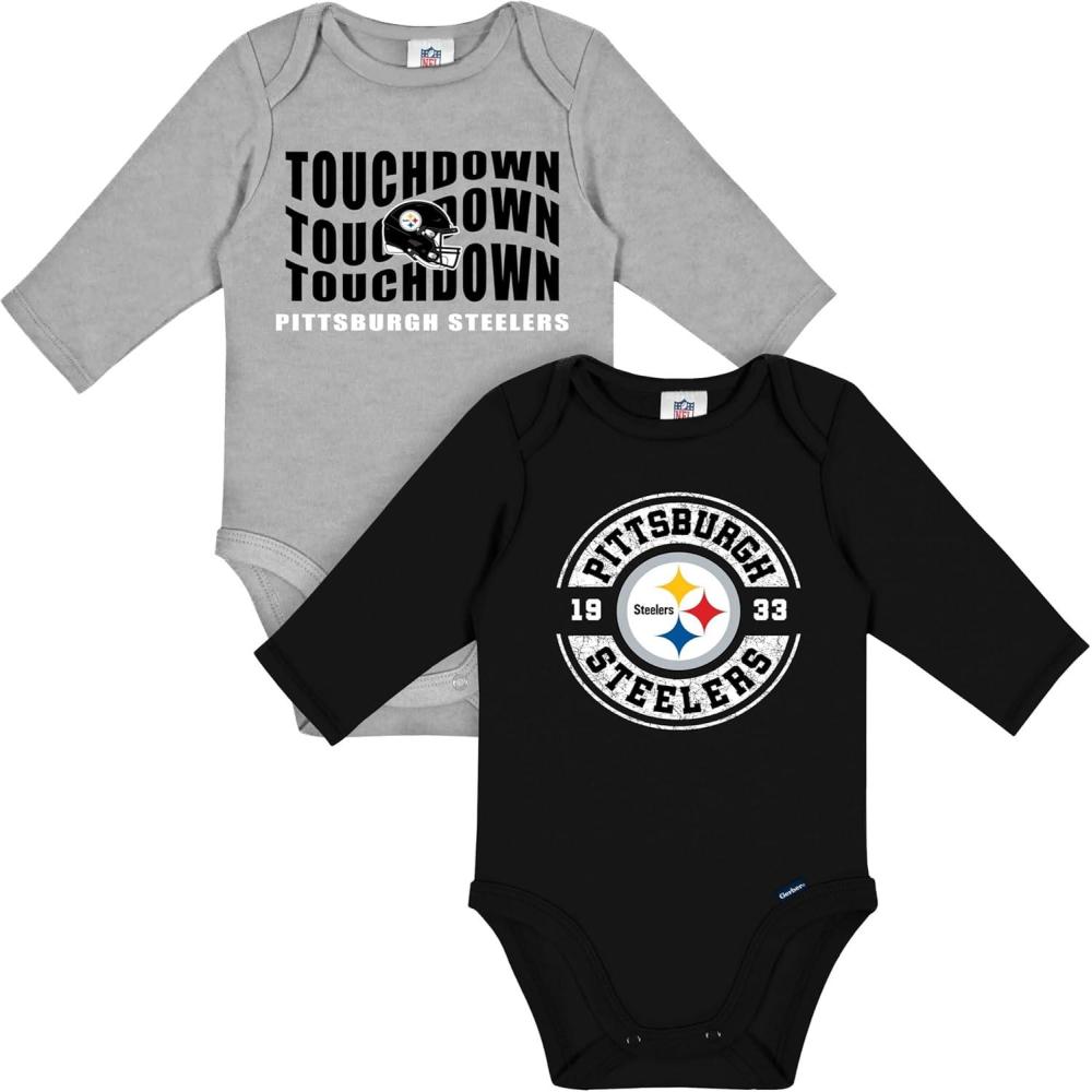 Gerber NFL unisex-baby Nfl 2-pack Long Sleeve Onesie Bodysuit(Steelers)