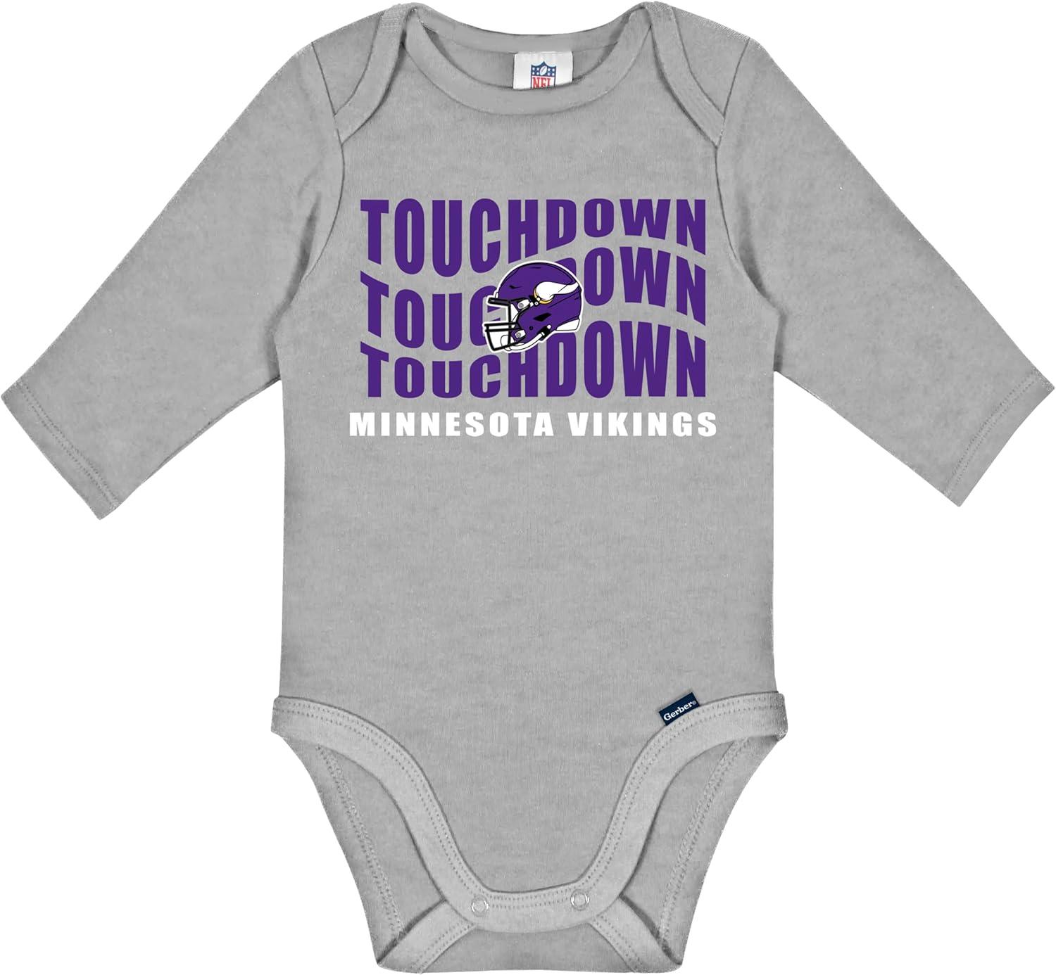 Gerber NFL unisex-baby Nfl 2-pack Long Sleeve Onesie Bodysuit(Vikings)
