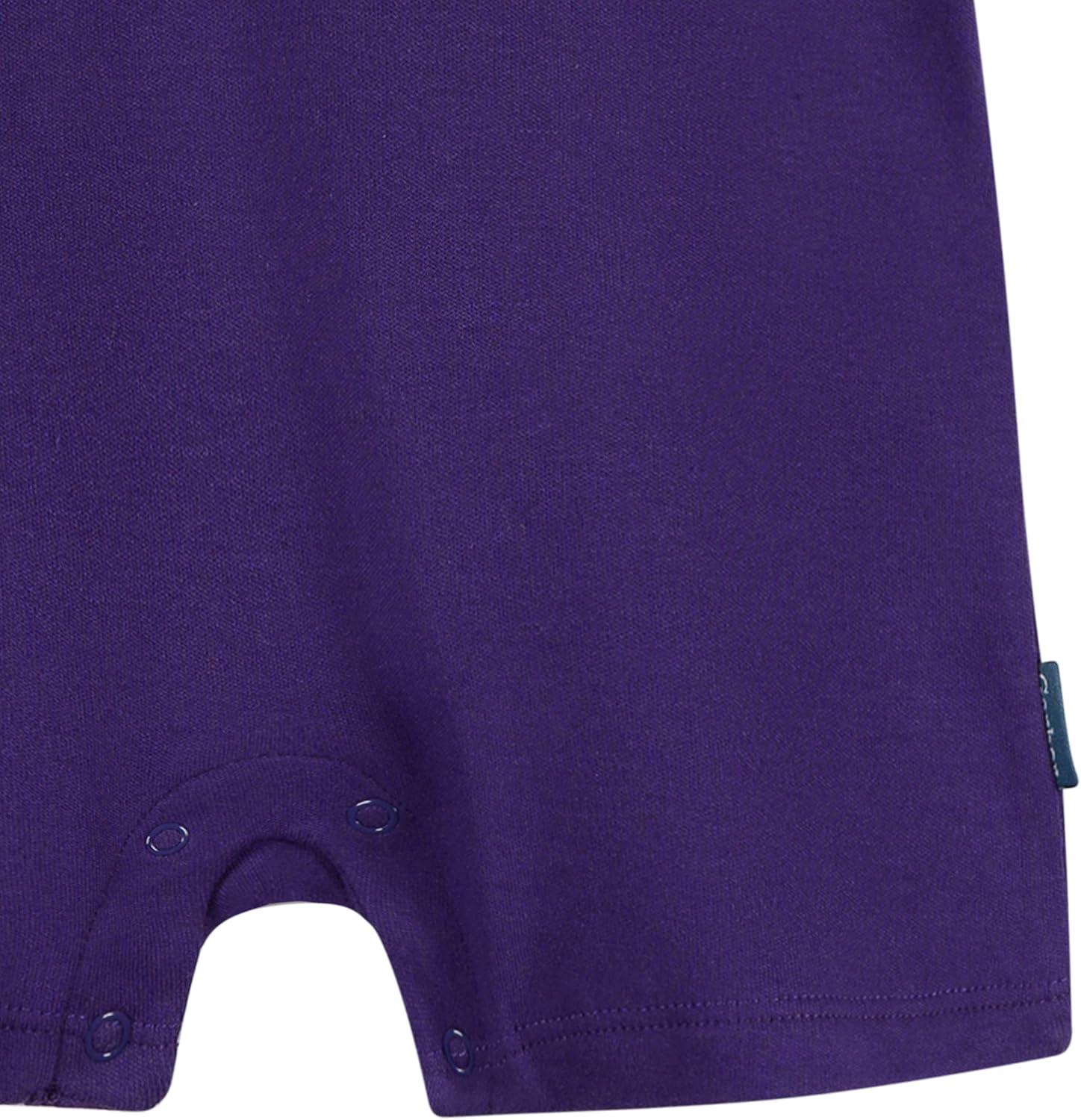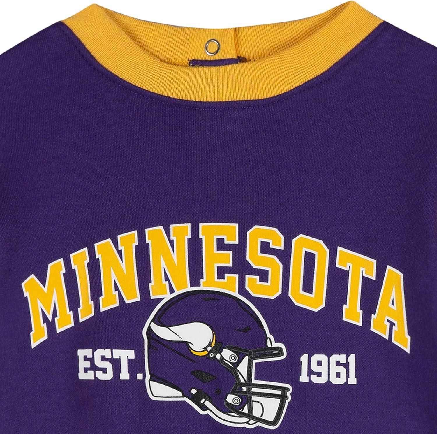 Your baby will be game-day ready in this adorable and comfy Vikings romper made just for the smallest members of the Skol squad. Made from stretchy, baby-soft fabric for all-day comfort, this one-piece features short sleeves, open legs, and easy snaps at the back neckline and legs. Whether they’re watching the game or enjoying tummy time, your little one will be showing off Minnesota pride from the very start.