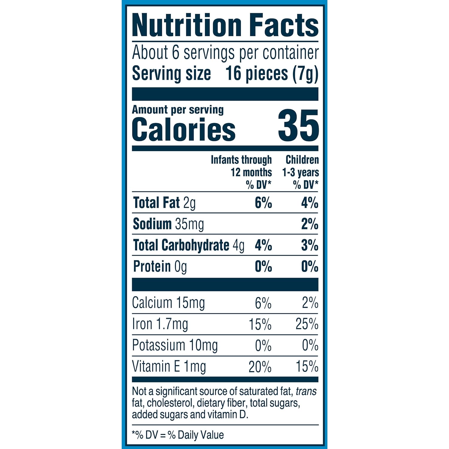 WHOLE GRAINS & NUTRIENTS: Lil Crunchies Snacks have 2 grams of whole grains per serving, 15% daily value of iron and 20% of vitamin E, making them an ideal snack for your older baby learning to self-feed. Not made with genetically engineered ingredients.