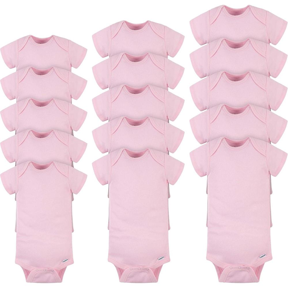 Stock up on Onesies bodysuits with this 15-pack Grow with Me bundle! This bundle includes three 5-packs of bodysuits in sizes 0-3M, 3-6M, and 6-9M to accommodate baby’s fast growth. Made of cotton, these bodysuits are soft, comfortable, and easy to clean. Plus, they’re great for DIY projects!