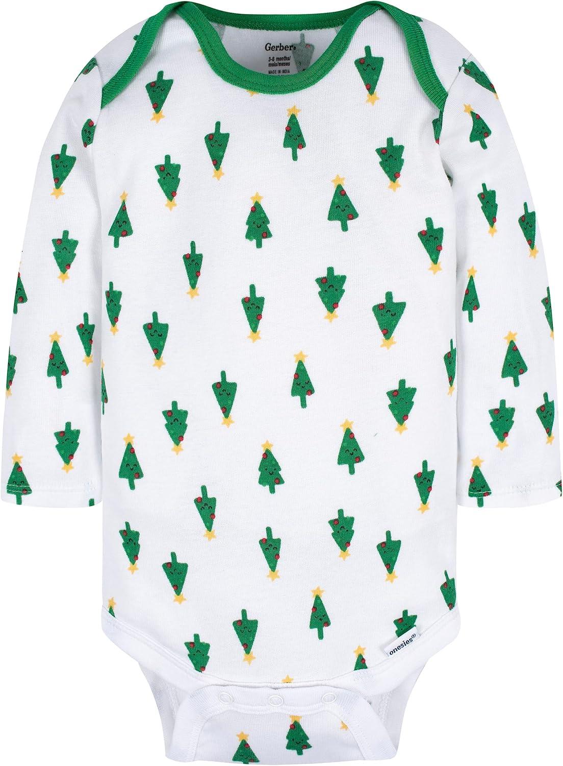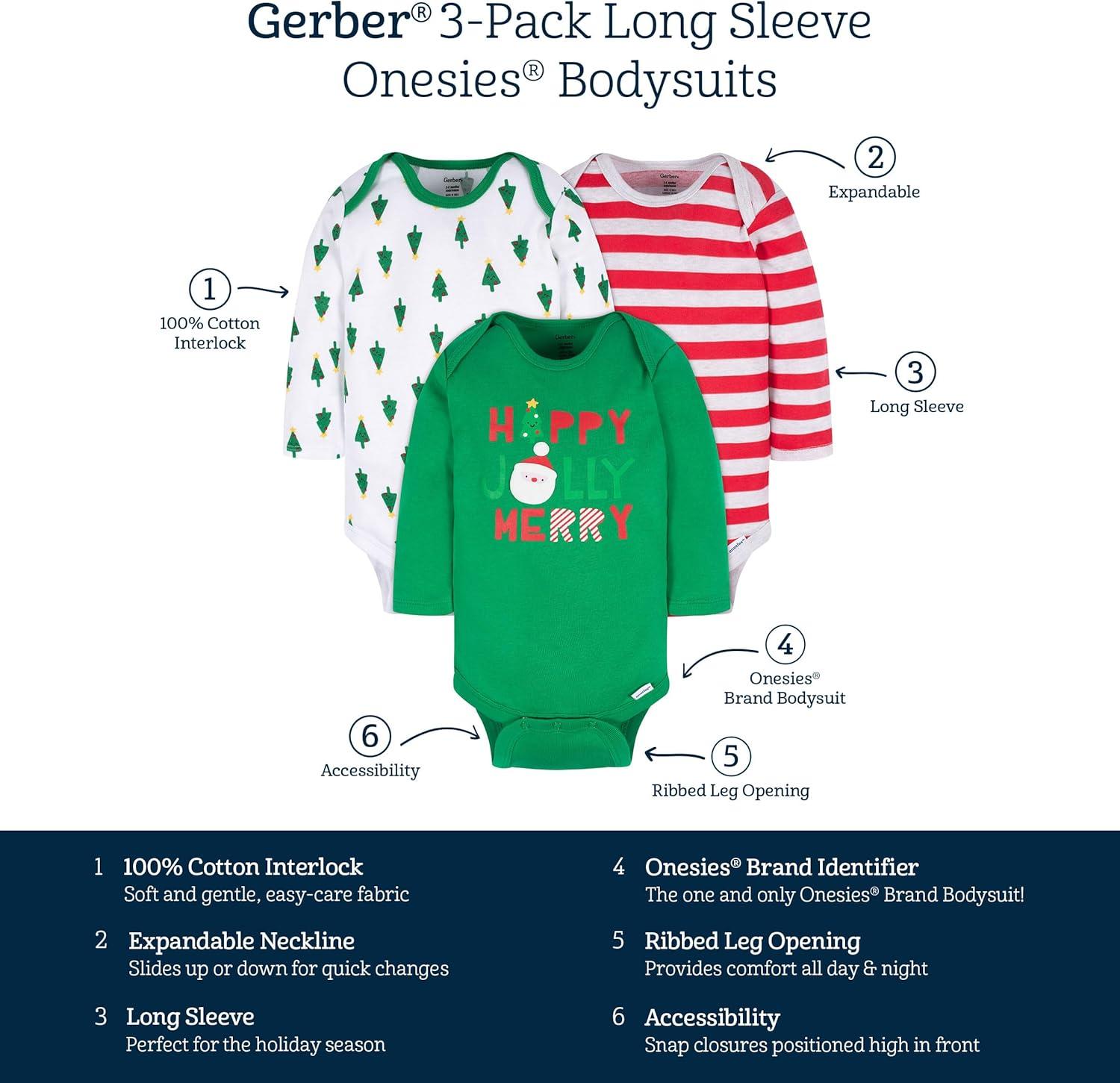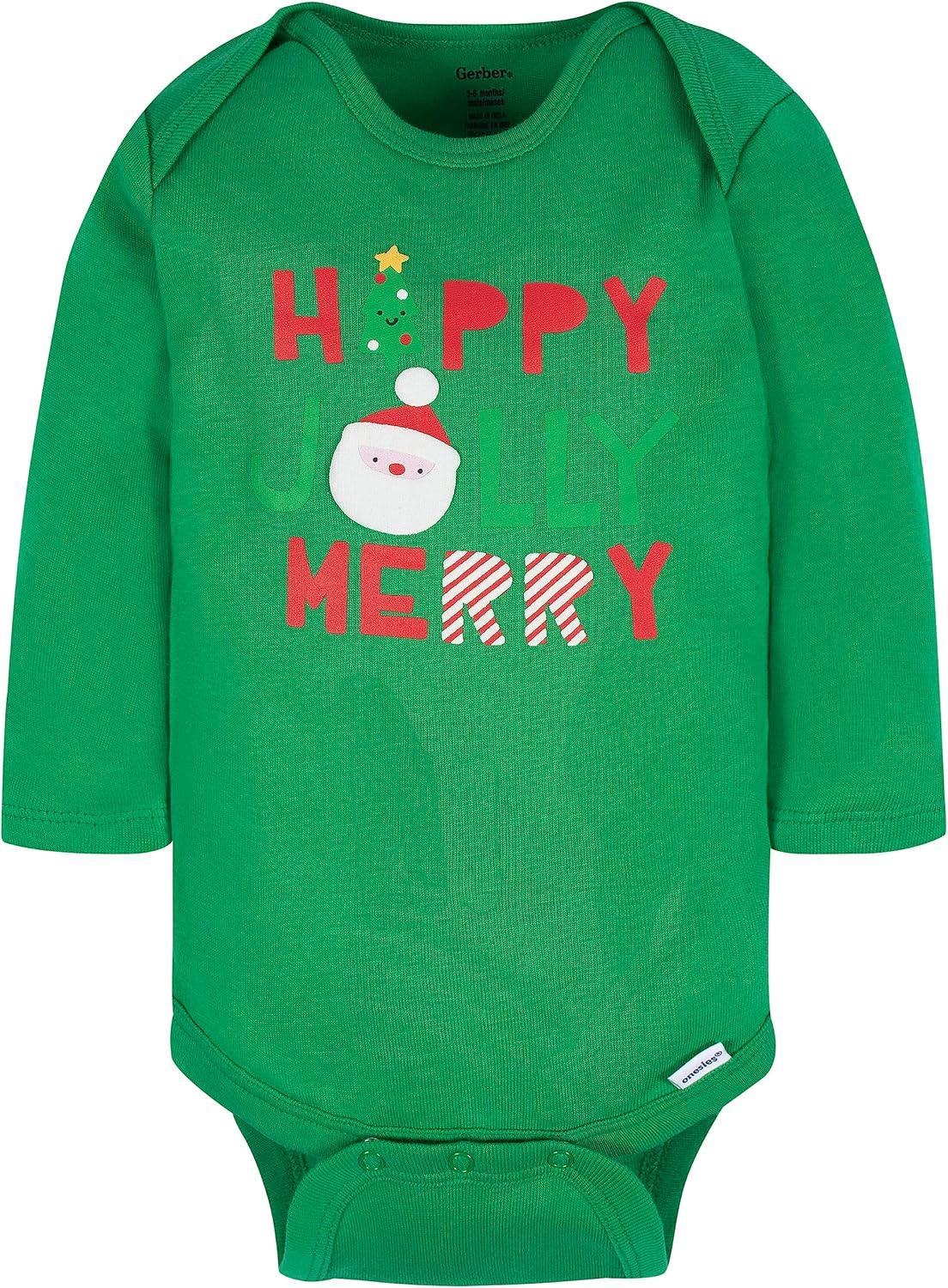 Gerber unisex-baby 3-pack Holiday Long-sleeve Onesies(Happy Jolly)