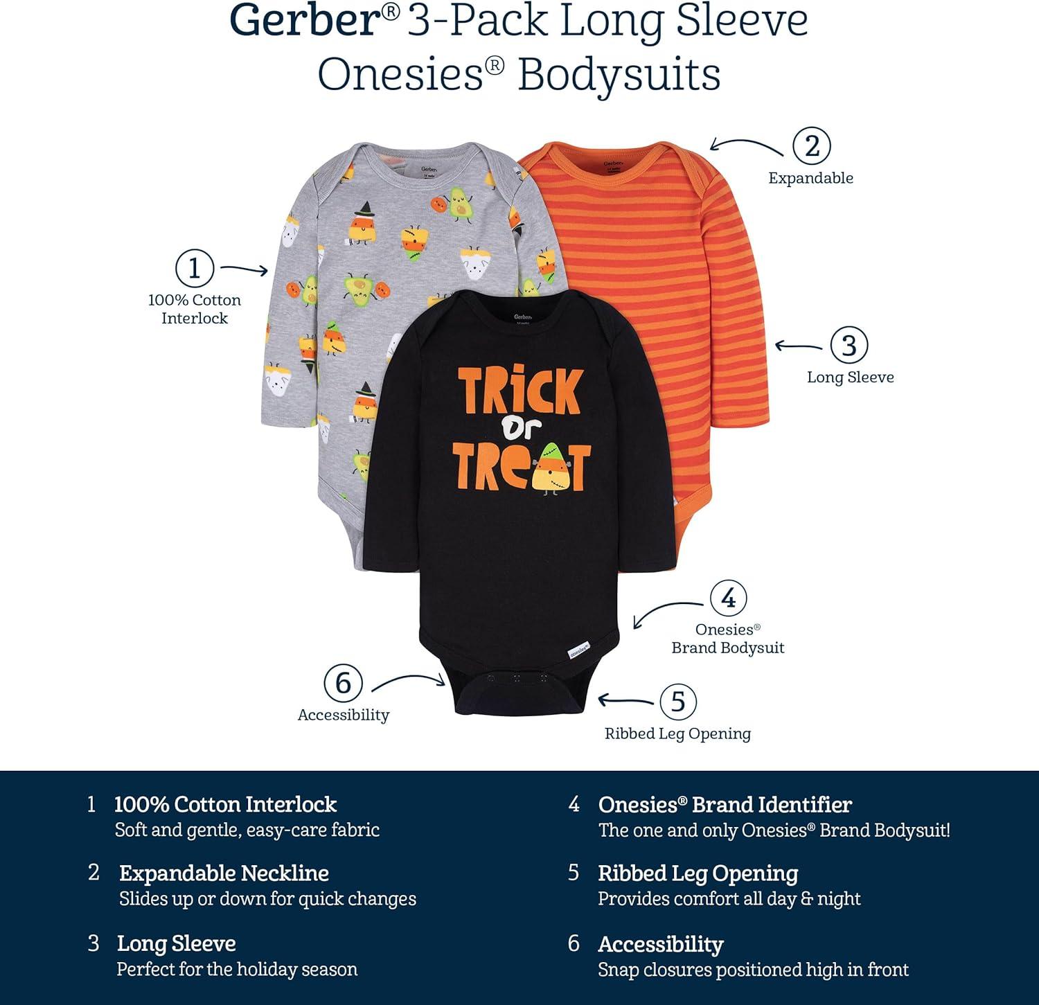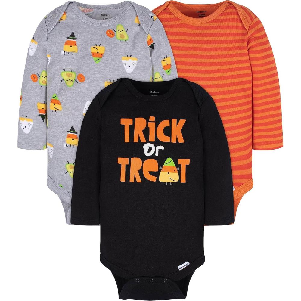 Gerber unisex-baby 3-pack Holiday Long-sleeve Onesies(Trick Or Treat)