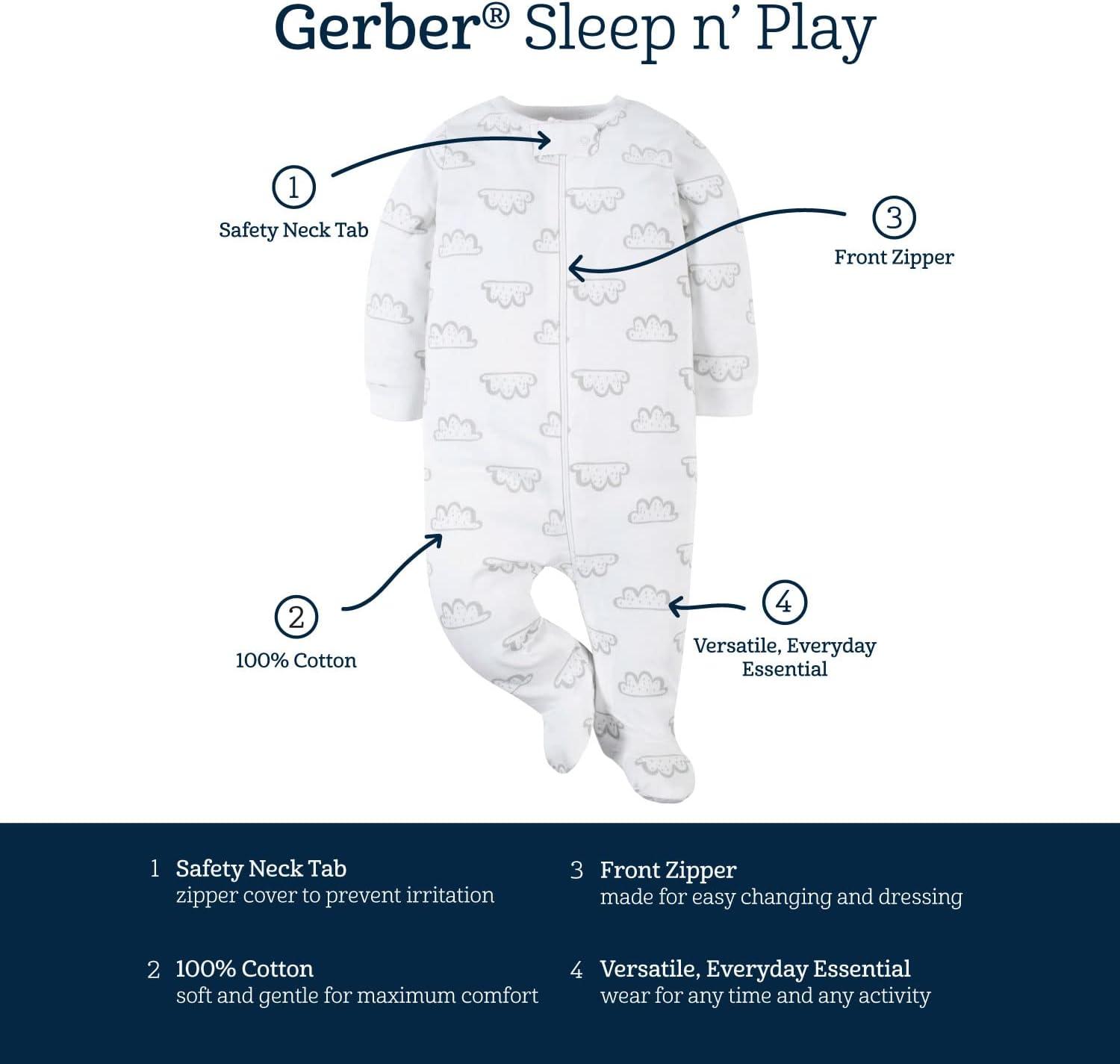 Gerber Unisex Baby 4 Pack Sleep ‘N Play Footie Sheep Grey 0-3 Months