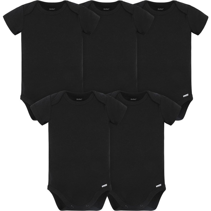 Gerber unisex-baby 5 Pack Onesies Multi-packs Bundle Interlock 180 Gsm(Black)