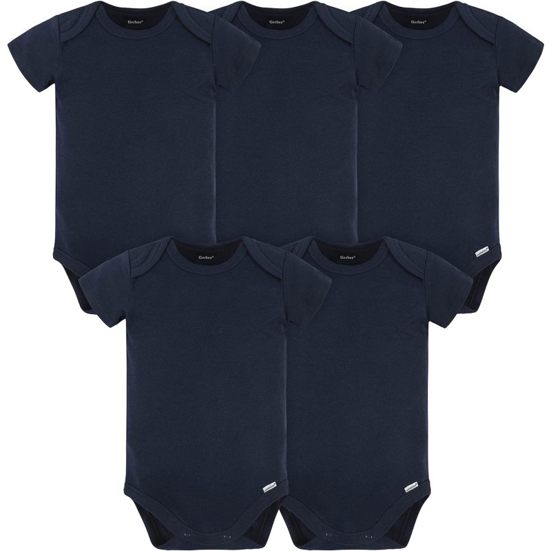Gerber unisex-baby 5 Pack Onesies Multi-packs Bundle Interlock 180 Gsm(Navy)