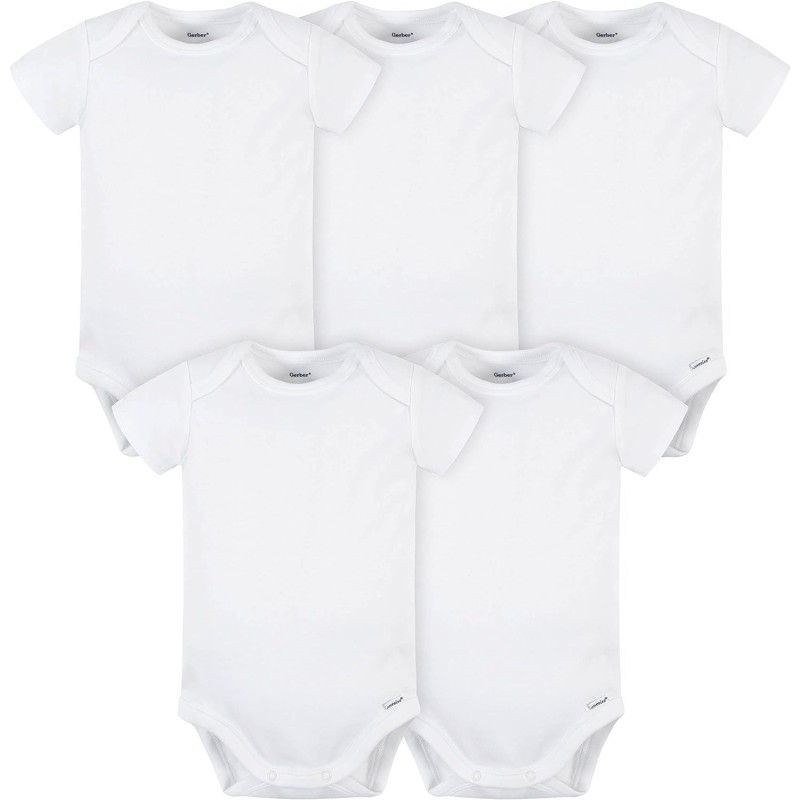 Gerber unisex-baby 5 Pack Onesies Multi-packs Bundle Interlock 180 Gsm(White)