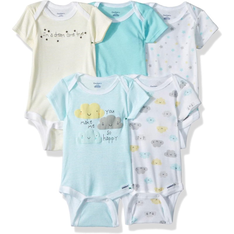 Gerber Unisex Baby 5-Pack Short-Sleeve Onesies(Clouds)