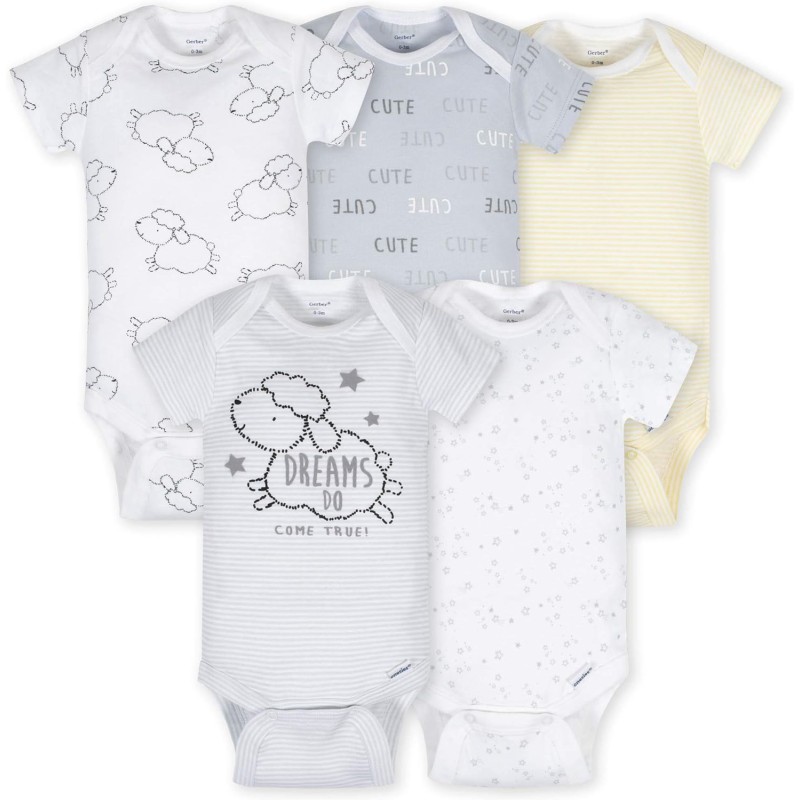 Gerber Unisex Baby 5-Pack Short-Sleeve Onesies(Sheep 5 Pack)