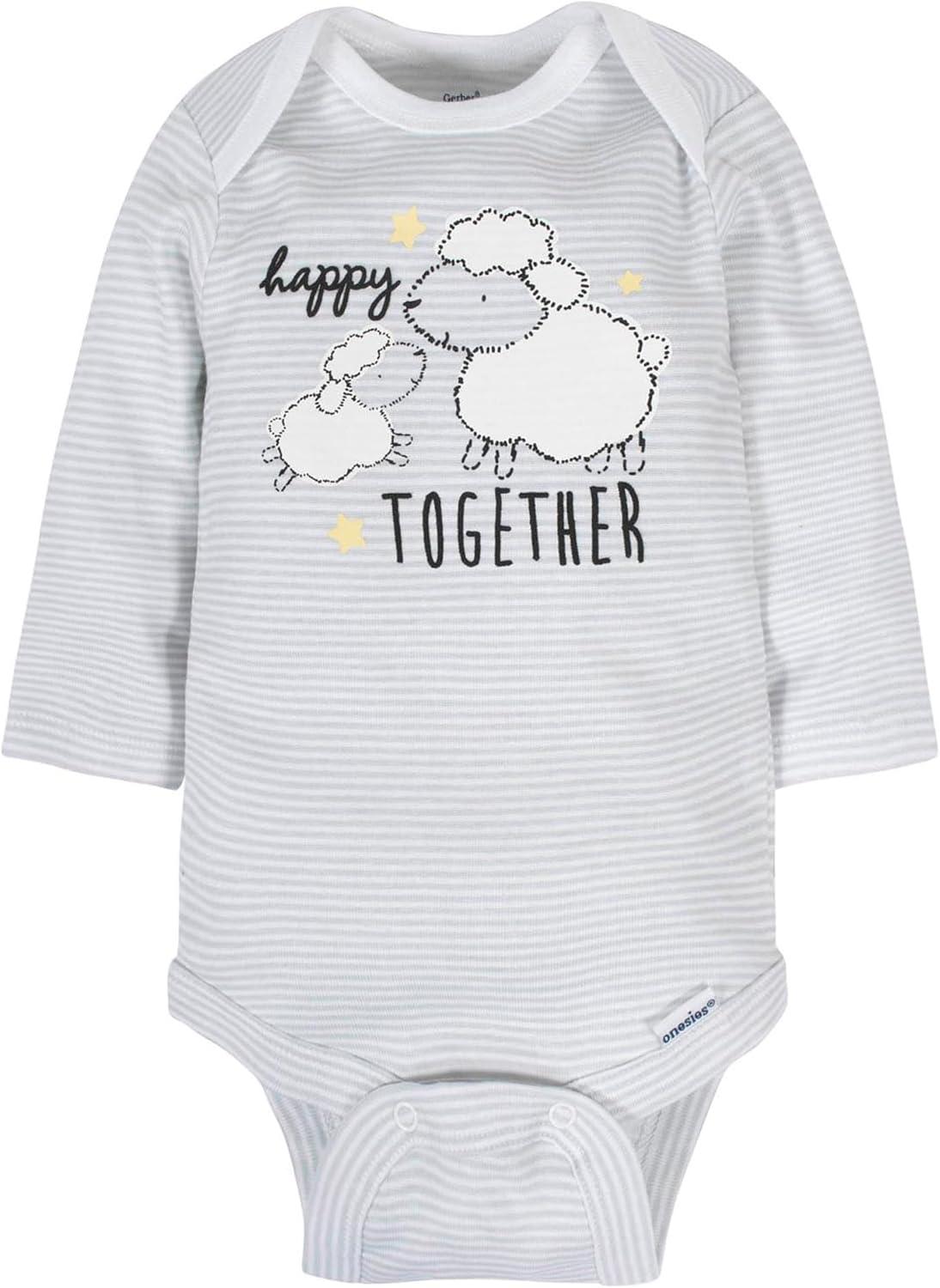 Gerber Unisex Baby 6 Pack Long-sleeve Onesies Bodysuit(Sheep)
