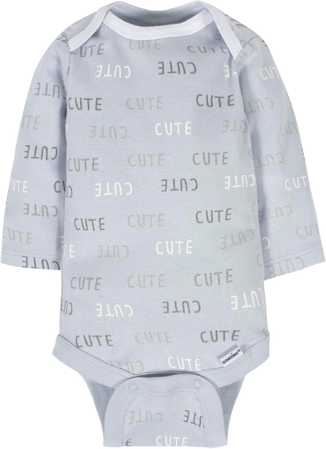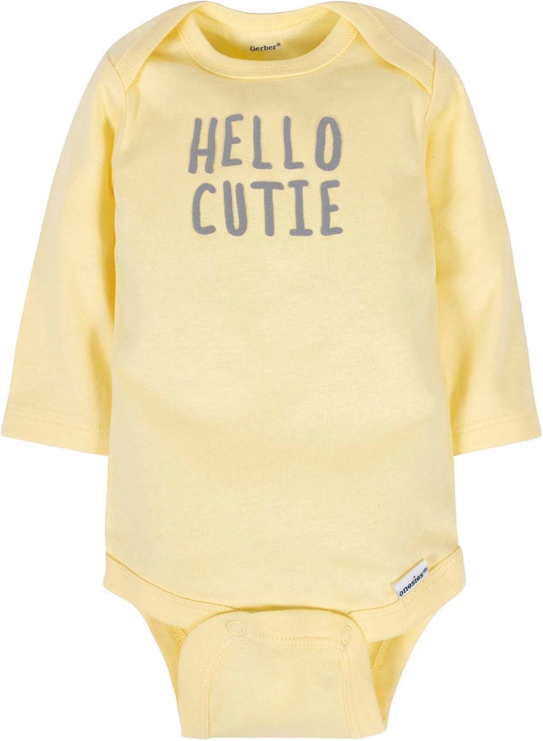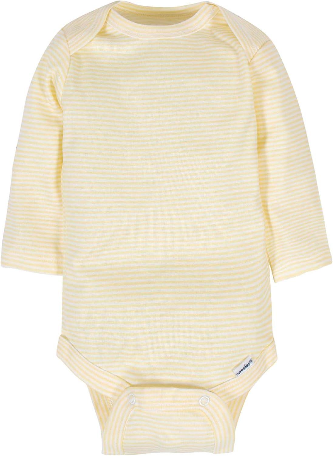 This 6-pack of baby boy or girl unisex long sleeve onesies bodysuits is a favorite of moms of little ones. The neutral white pairs with everything in your little one's wardrobe to provide plenty of flexibility in dressing. They match with any color or style of bottom to create a low-key outfit for daily wear. When the air turns cooler, they double as a cozy under layer. Made with 100 percent cotton rib, the breathable fabric keeps delicate skin comfy and dry. Handy time-saving features like the higher-in-the-front bottom snap closure make quick work of diaper changes. Machine wash and dry fabric requires no added effort on laundry day.