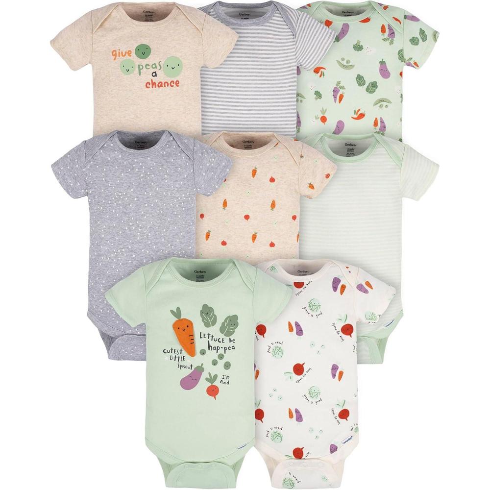 Gerber unisex-baby 8-pack Short Sleeve Onesies Bodysuits(Happy Veggies)