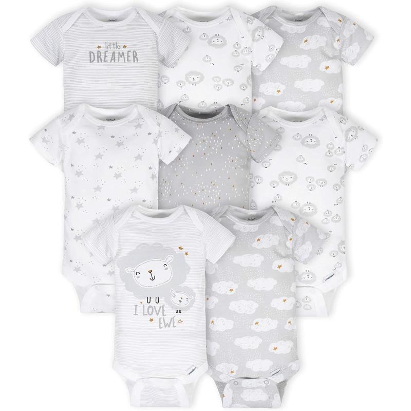 Gerber unisex-baby 8-pack Short Sleeve Onesies Bodysuits(Sheep Grey)