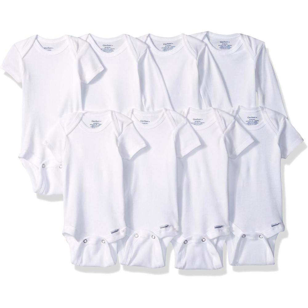 Gerber unisex-baby 8-pack Short Sleeve Onesies Bodysuits(White Long Sleeve Short Sleeve)