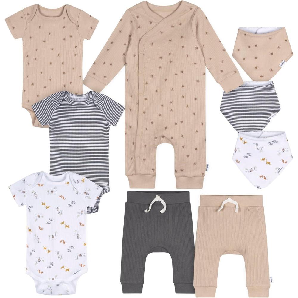Gerber unisex-baby 9-piece Baby Gift Set for Newborn Boys & Girls – Premium Cotton Baby Essentials Layette Set(Safari)