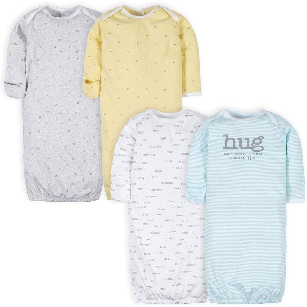 Gerber unisex-baby Baby Boy and Girls 4-pack Sleeper Gown(Words Grey)