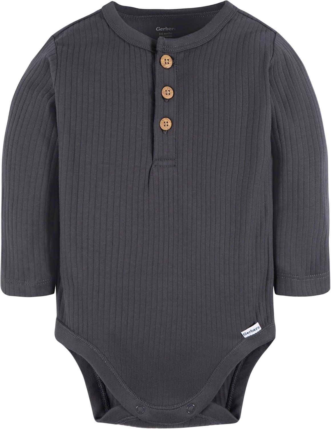 Keep your bundle of joy comfy and stylish with our two-pack of baby bodysuits. Crafted with convenience in mind, these bodysuits feature an easy pull-on design with simple snaps at the legs, making dressing and diaper changes easy. The faux wood Henley-style button-down top adds a classic touch, while comfort ribbing at the neckline and leg openings ensures a comfortable, snug fit for your little one. Perfect for cooler weather, these long-sleeve bodysuits are easy to layer as needed for an extra-cozy feel.