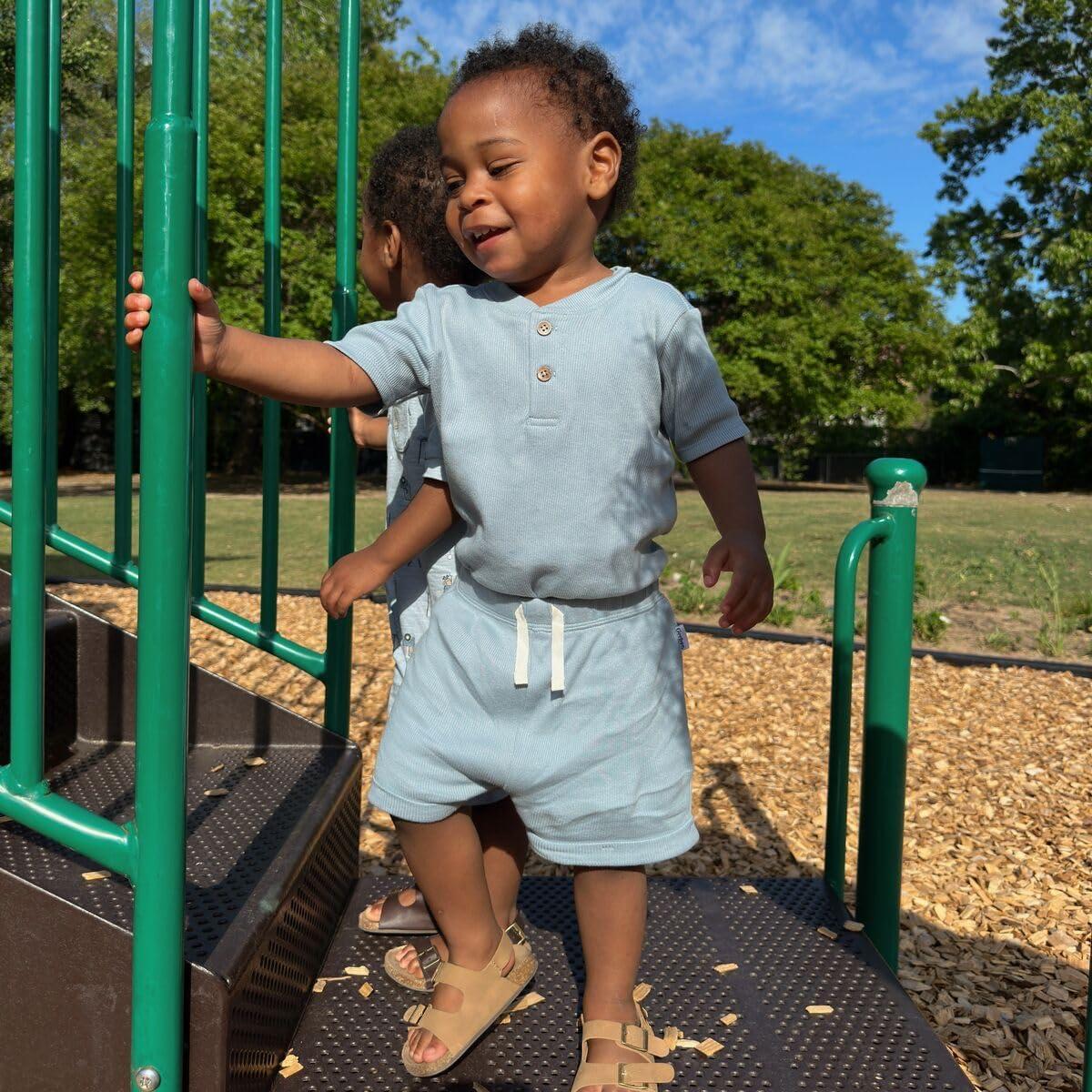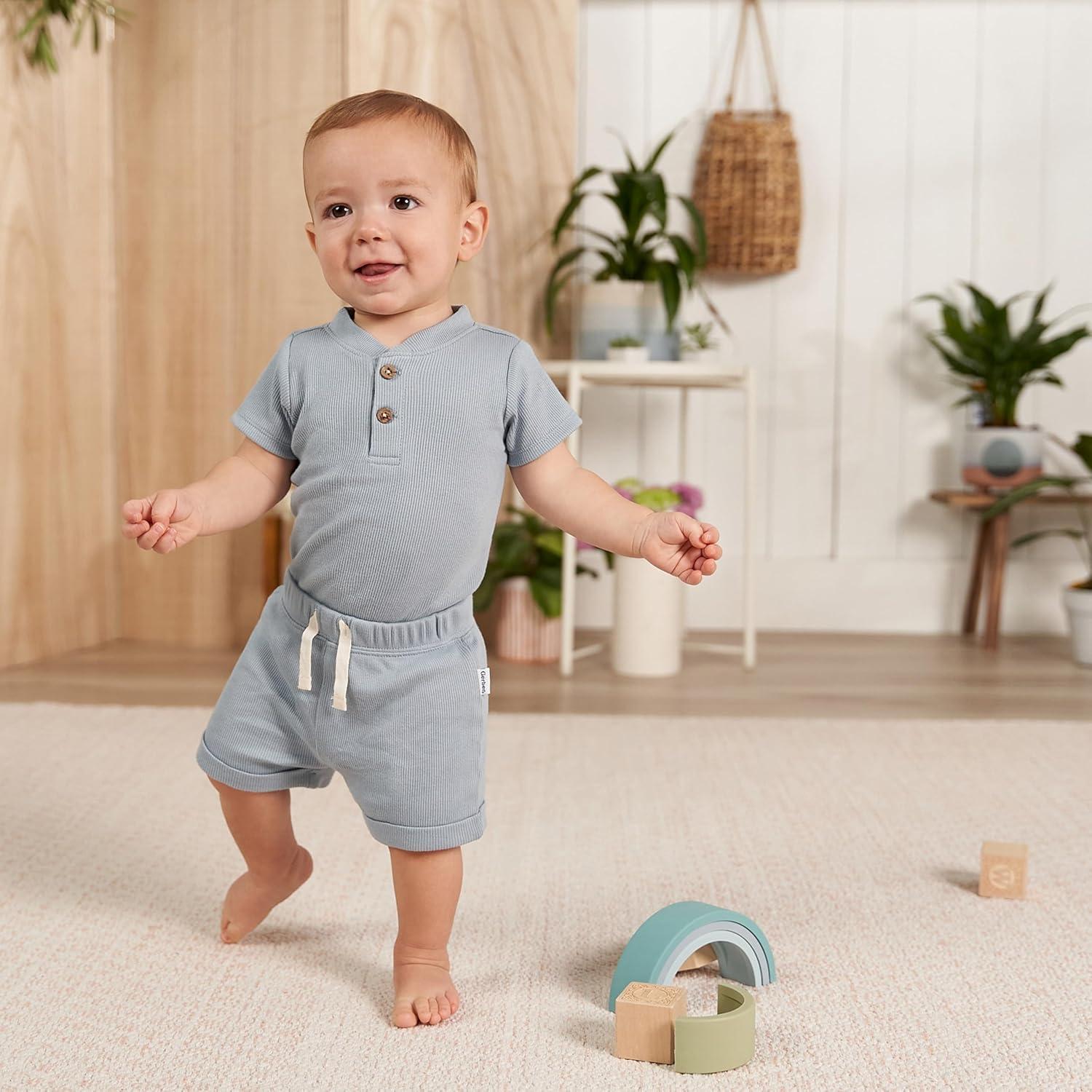 Keep your little one comfy and stylish with this baby boy bodysuit and shorts set, crafted from 100% cotton for a gentle touch on sensitive skin. The bodysuit features convenient leg snaps for quick and easy diaper changes, while vertical ribbing provides a natural stretch for all-day comfort. The matching shorts come with a comfort-stretch waistband, ensuring a secure fit as your baby moves and plays. Thoughtful details like faux wood buttons on the bodysuit and a faux drawstring on the shorts add a charming touch to this everyday outfit.