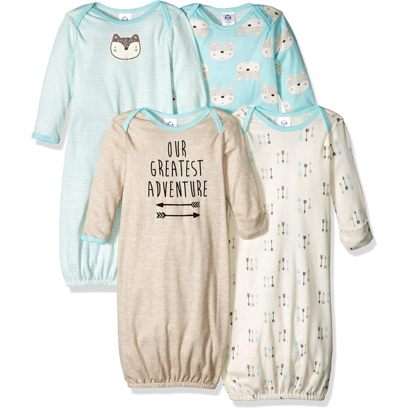 Gerber Unisex Baby Boy and Girls 4-Pack Sleeper Gown(Aqua Fox)