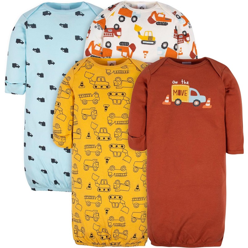 Gerber Unisex Baby Boy and Girls 4-Pack Sleeper Gown(Transportation Zone)