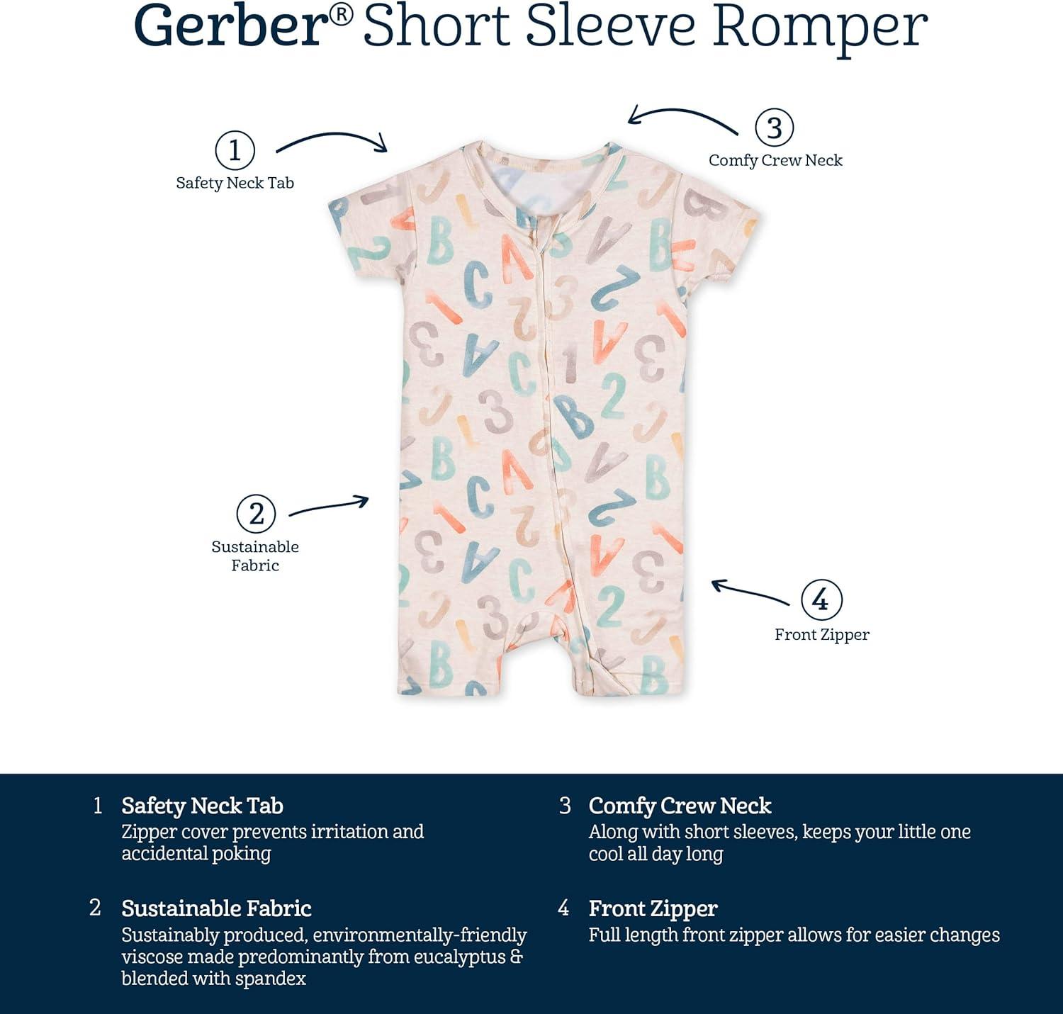 Gerber Unisex Baby Buttery Soft Short Sleeve Romper with Viscose Made from Eucalyptus(Alphabet Soup)